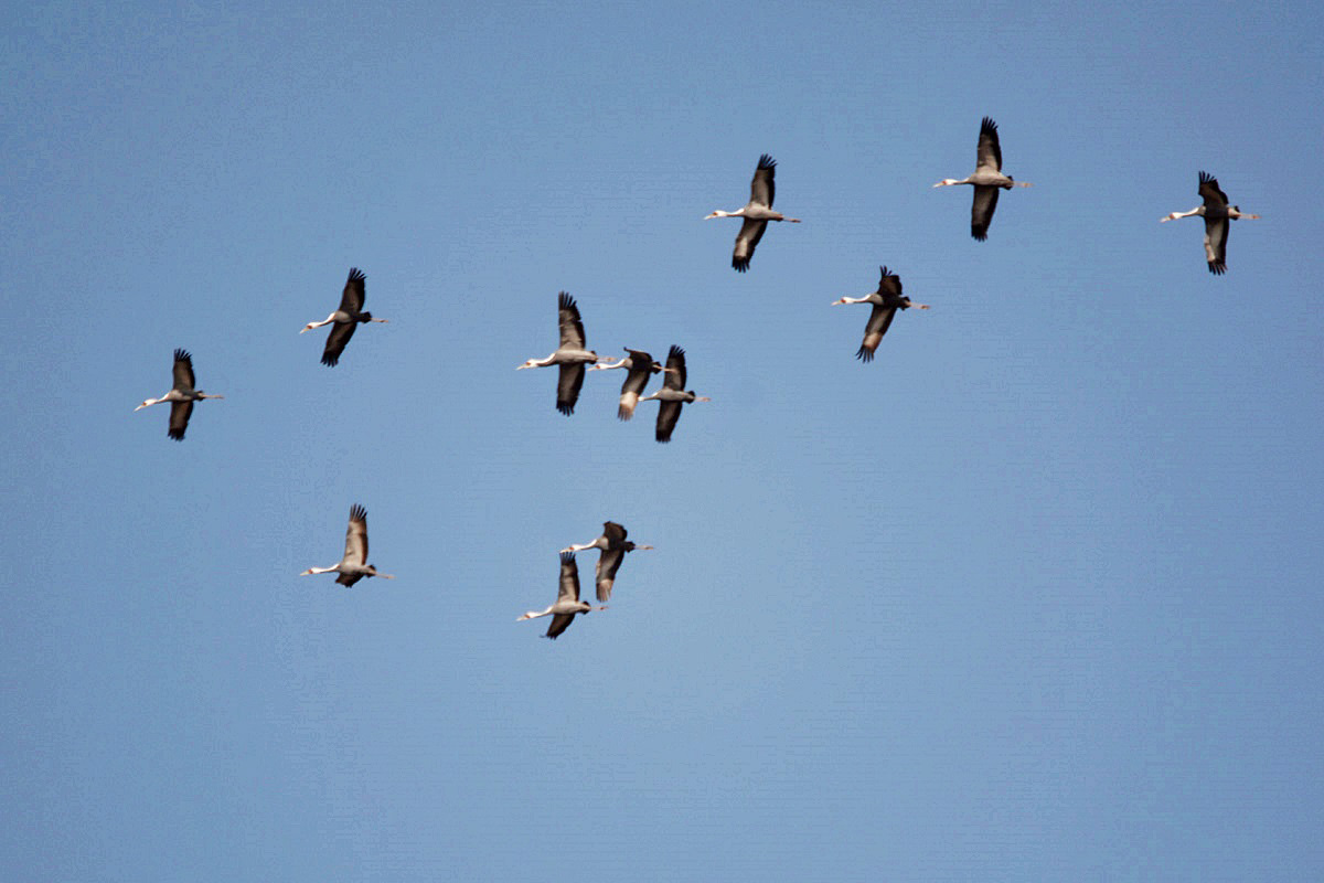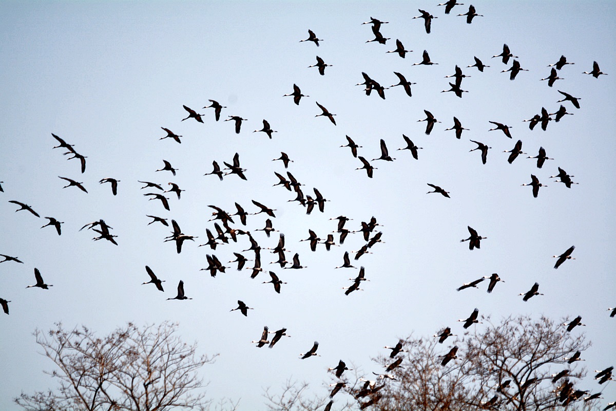 이렇게 많은 두루미가 무리지어 창공을 선회하는 것은 처음 본다. 추측컨대 월동을 위해 이제 막 도착하는 철새들이