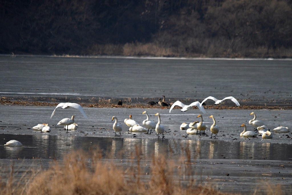 고니(白鳥)들의 모습이 요즘 비교적 활발하다.