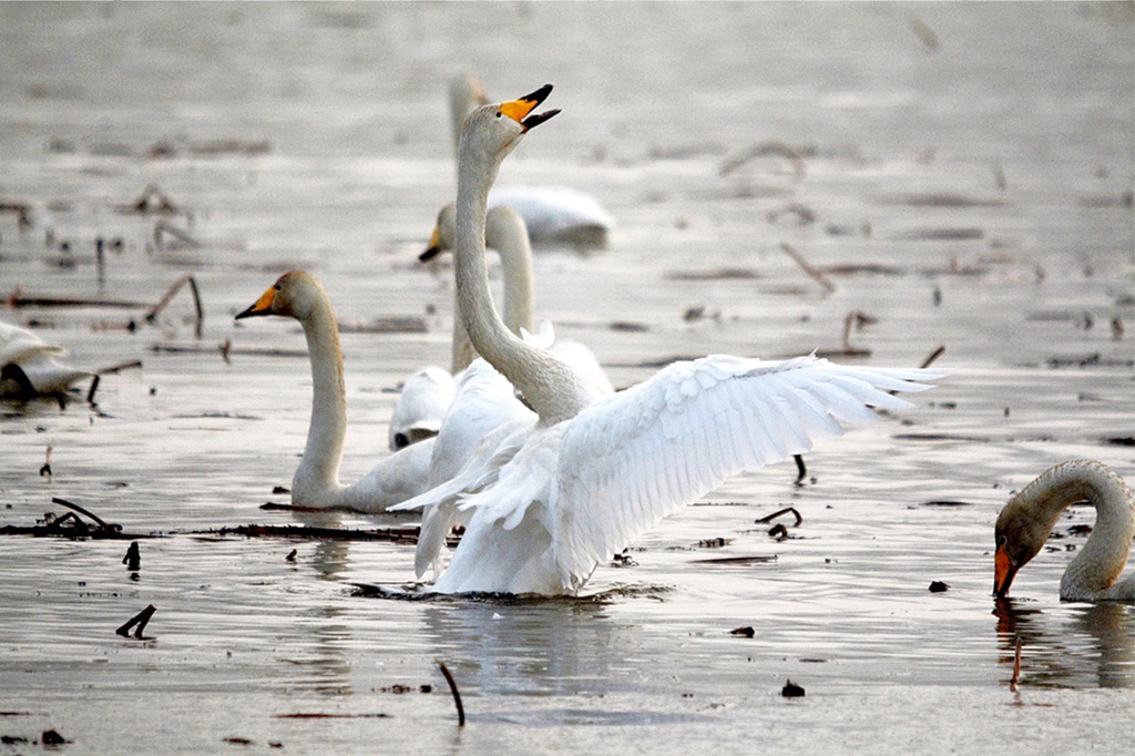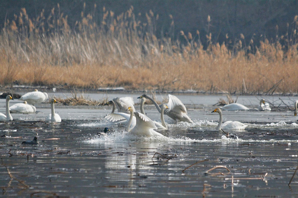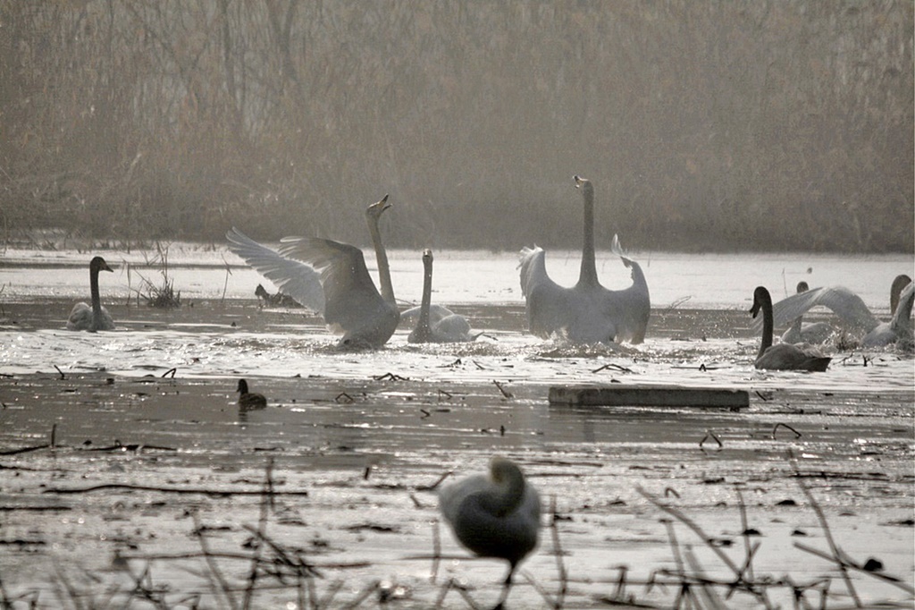 이 곳은 고니들의 겨울나기 서식지로 유명한 곳이지만 그동안 물이 완전히 결빙되어 고니들을 볼 수 없었는데