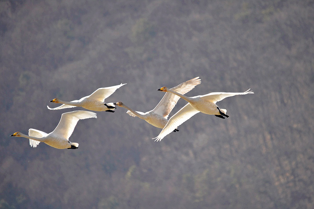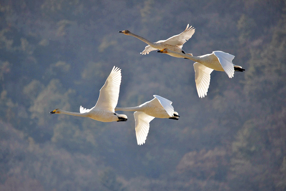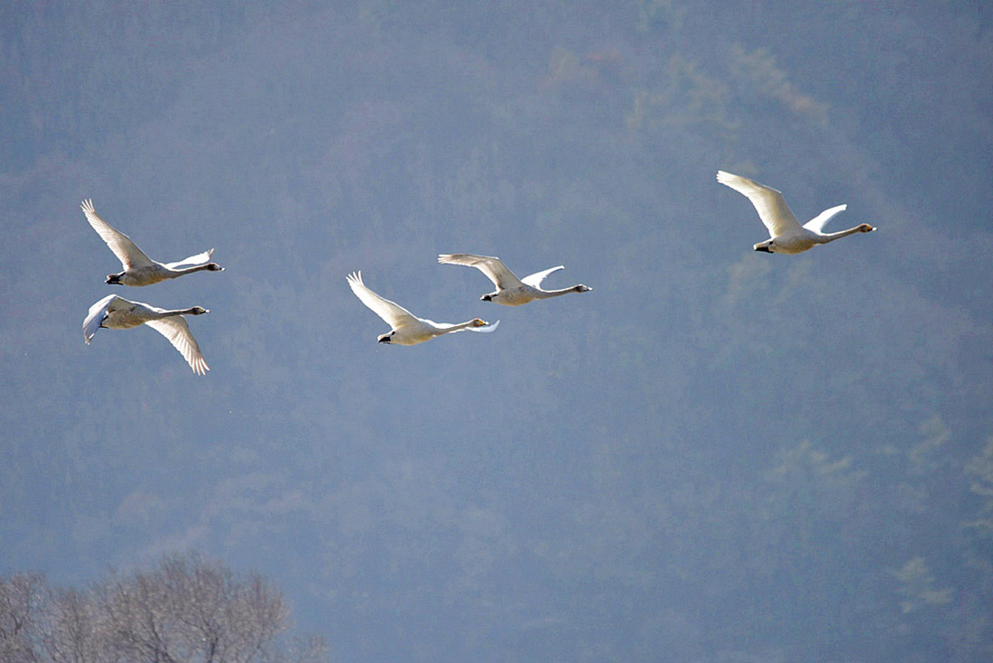 고니(白鳥)들의 모습이 요즘 비교적 활발하다.