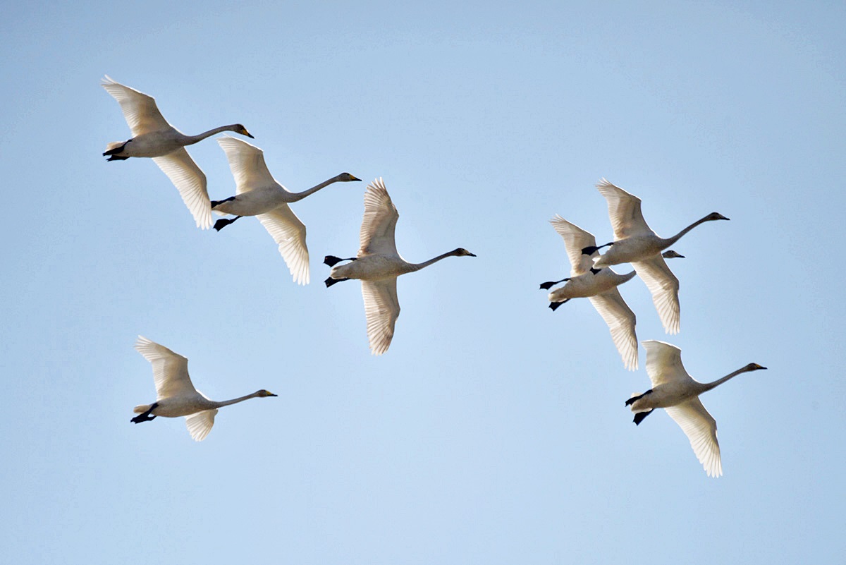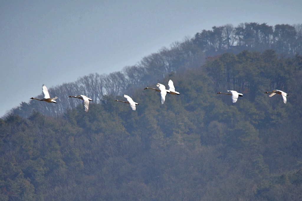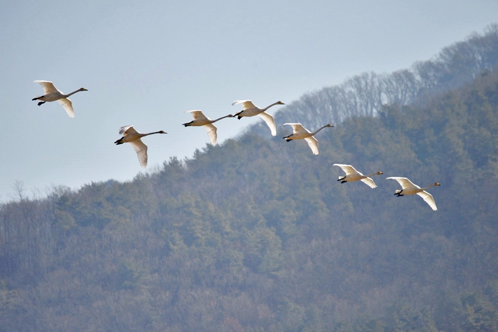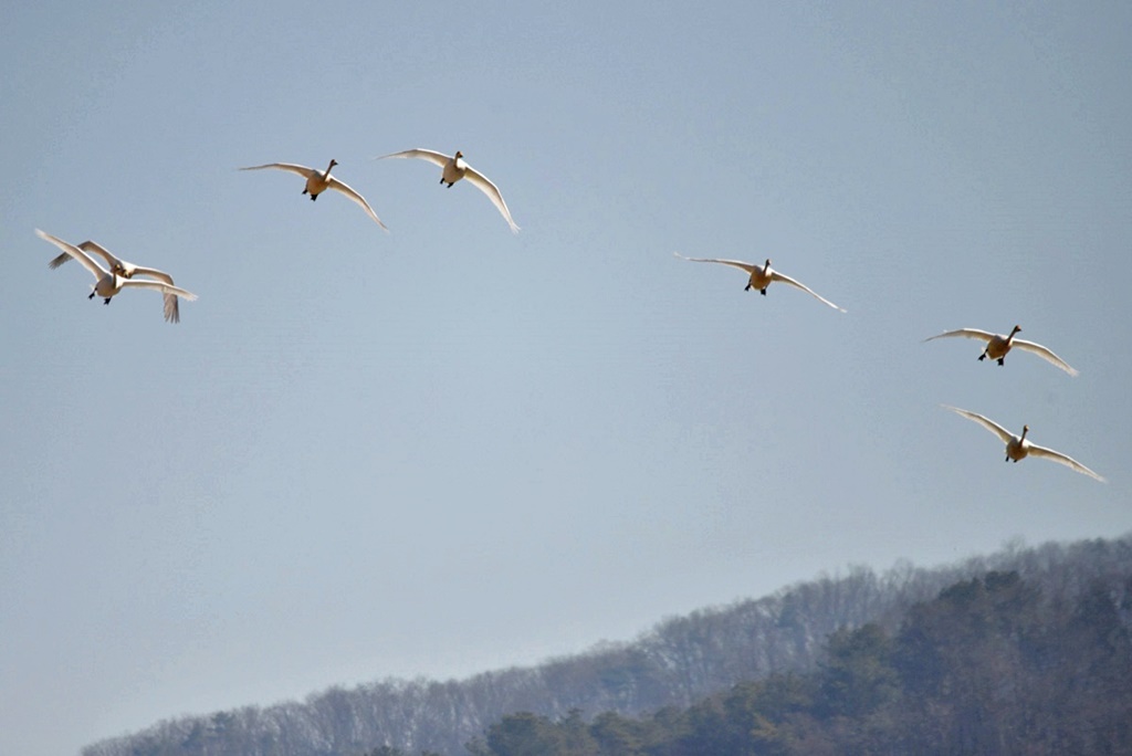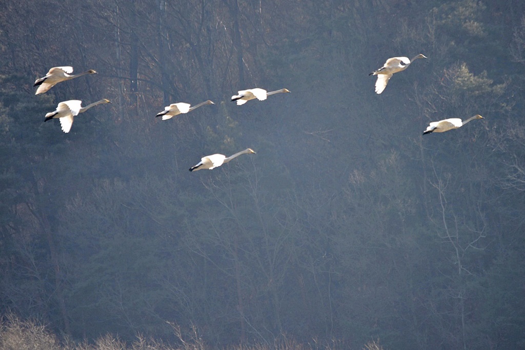 앗! 온다.. 옆사람의 소리에 깜짝 놀라 시선이 머무는 곳에 저 멀리 한 무리의 고니가 창공을 가르며 이곳을