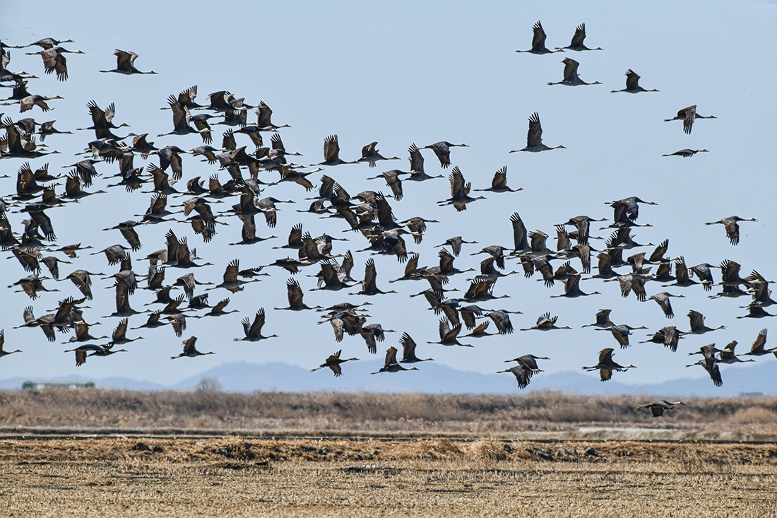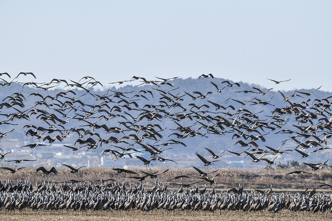 흑두루미는 천연기념물 228호로 보호되고 있는 철새로 러시아의 아무르 유역과 중국 북동부에서 번식한다.