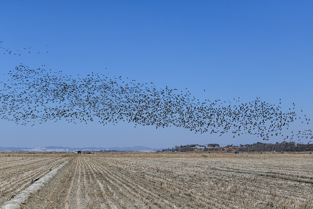 카톡으로 보내왔기에 여기에 옮겨보았다. 새들의 군무(群舞) 모습이 참으로 장관이다.(23년 03월 02일 촬영)