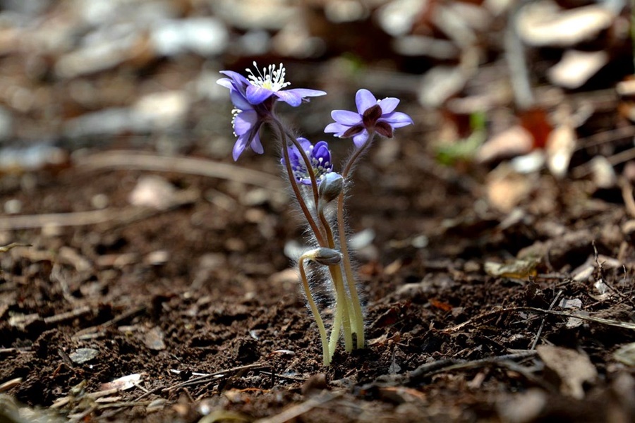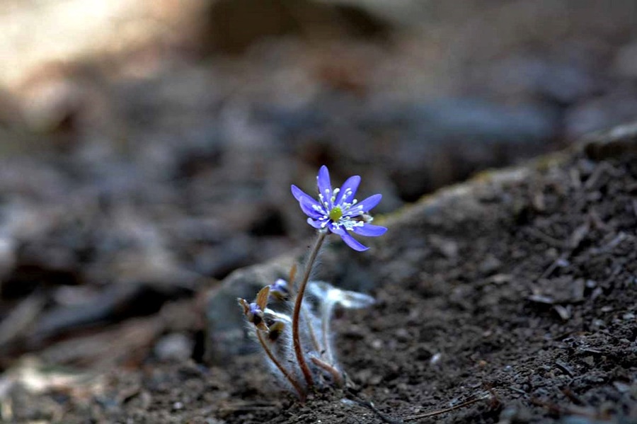 매년 3월 초순경이면 여기저기 빙설이 남아있는 산기슭 비탈길에 청색노루귀가 숨을 쉬고 있다.