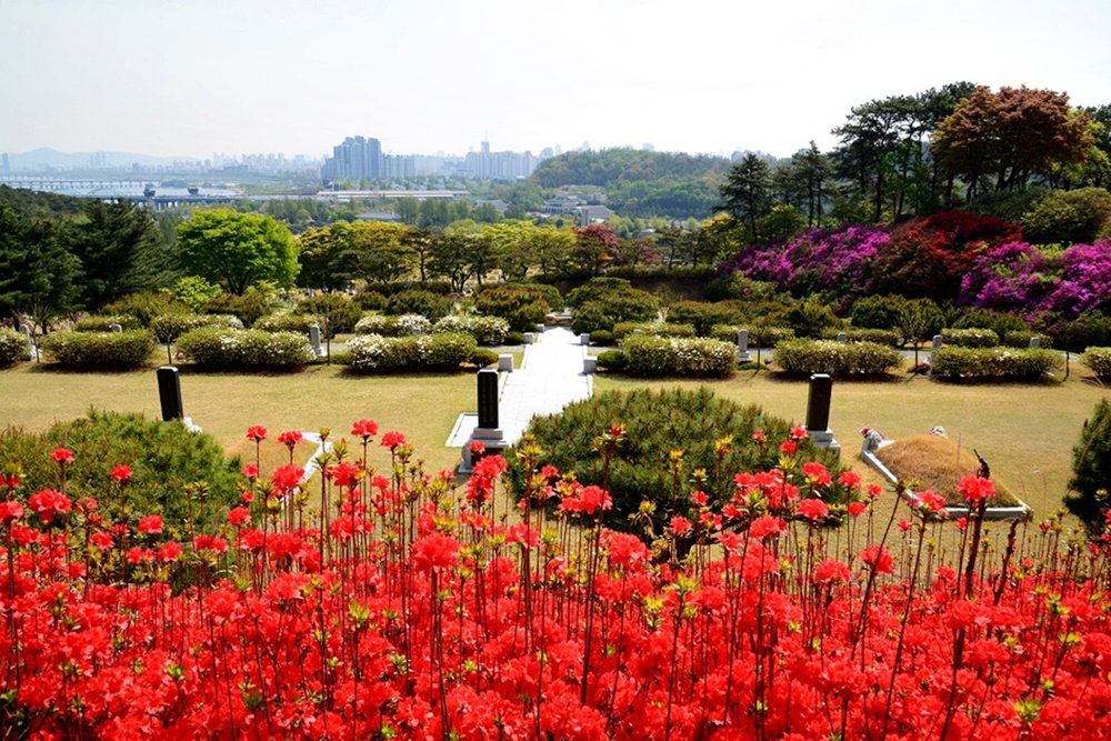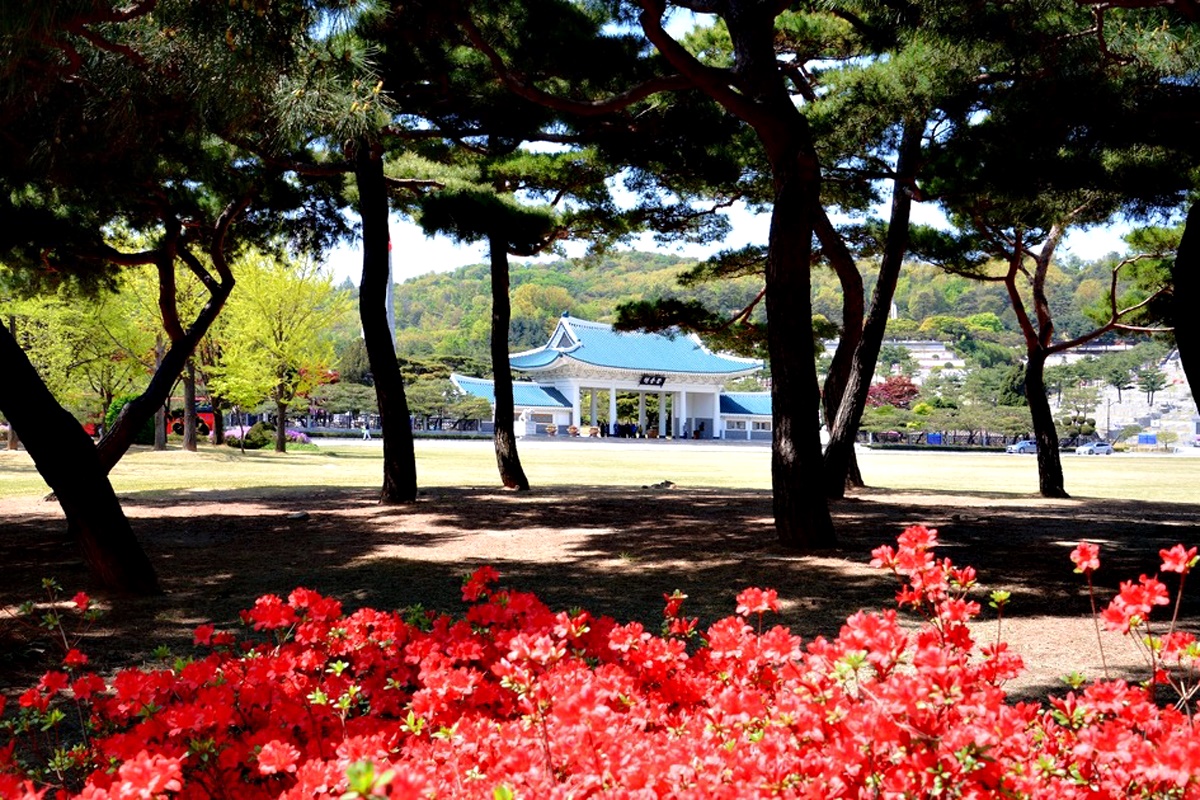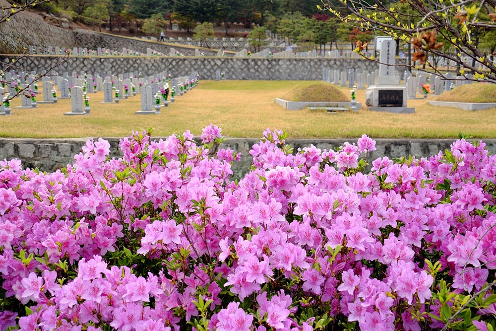 얼마전까지 흐드러지게 피었던 벚꽃은 어느덧 꽃비 되어 떨어지고 화사한 철쭉꽃이 호국영령들의 권역을 아름답게