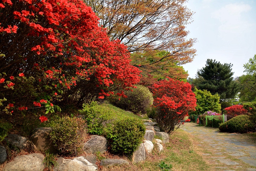 수놓고 있다. 특히 현충지 주변의 영산홍등 철쭉이 절정기를 구가하면서 그 아름다움이 시선을 멈추게 한다.