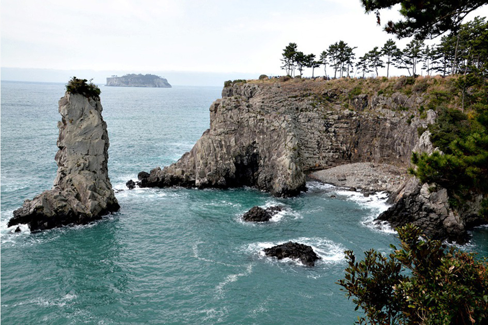 주변 해안은 파도의 침식으로 만들어진 해식절벽과 해식동굴이 절경을 이루고 있다.
