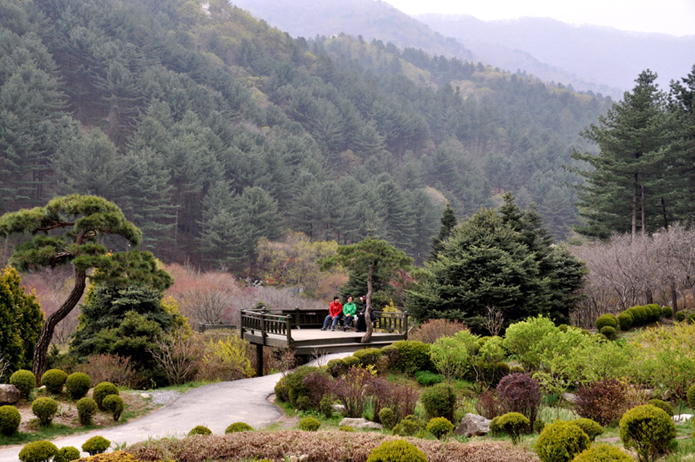 축령산을 병풍처럼 두르고 앞으로는 은둔산을 조망할 수 있는 곳에 아름다운 '아침고요 수목원'이 있다.