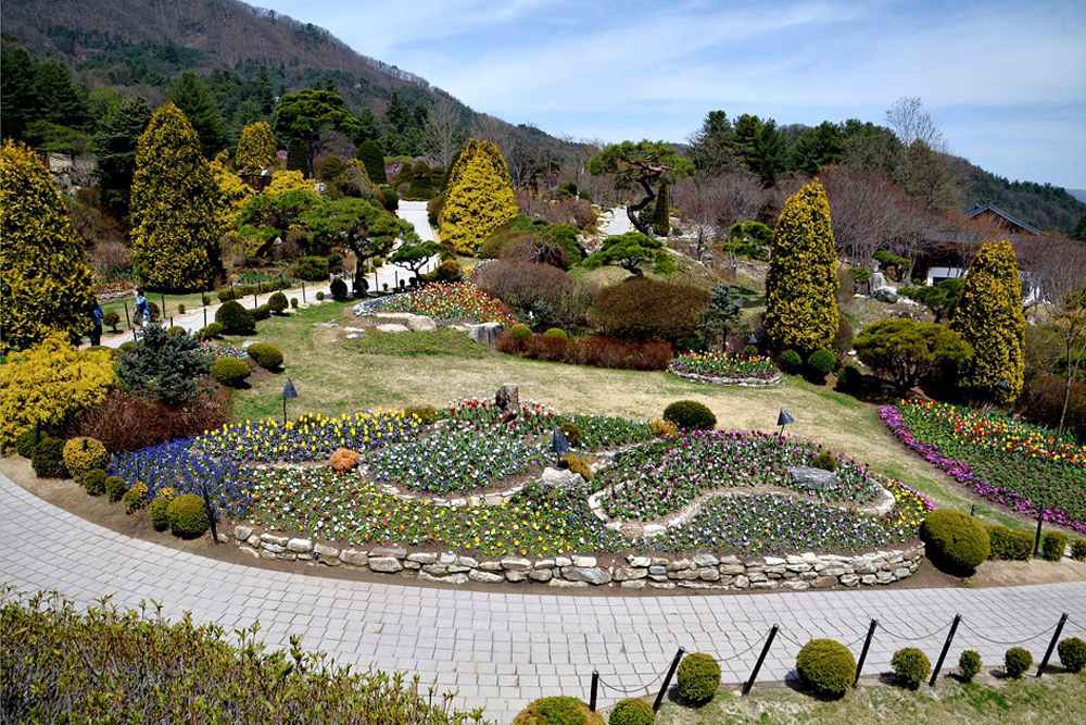 아침고요는 한국적 정서를 담은 정원을 만들려는 뜻을 가지고 1996년에 모 대학교 원예학과 교수인 한상경씨가