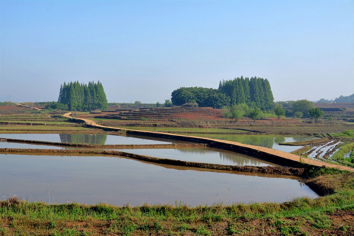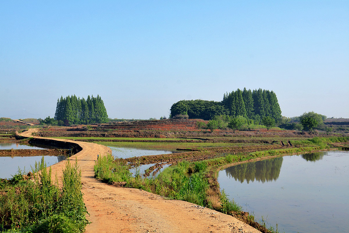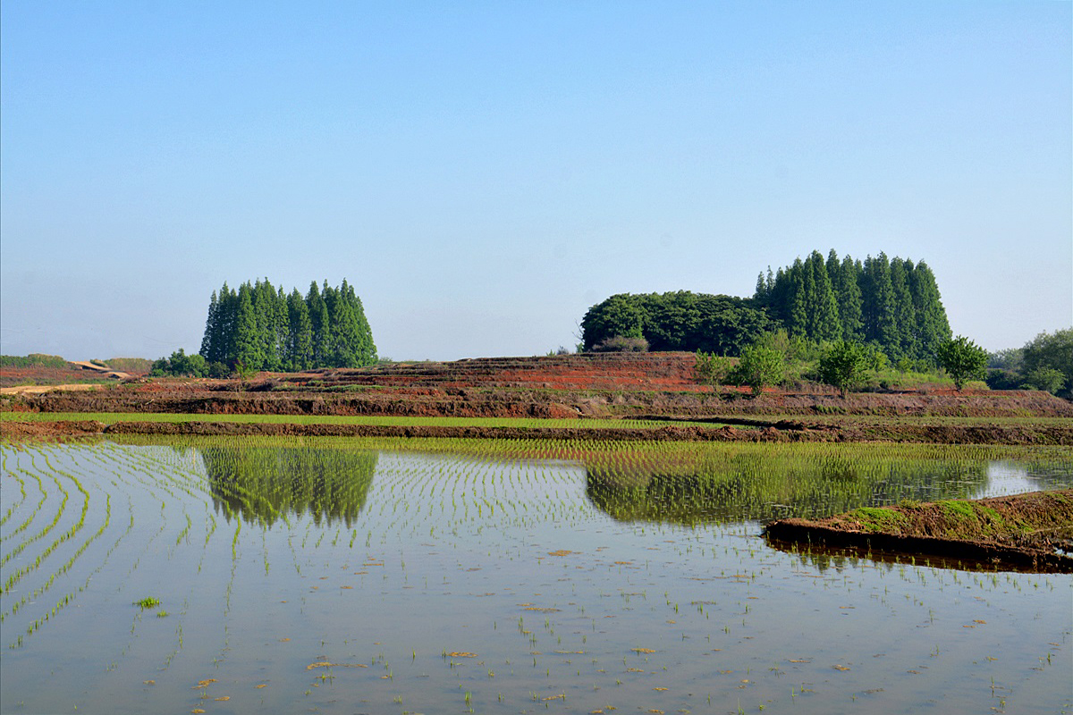 5월의 신록이 녹음으로 바뀌려는 계절.. 이제 갓 심어놓은 연초록 볏모들이 동네 언덕 울창한 나무들의