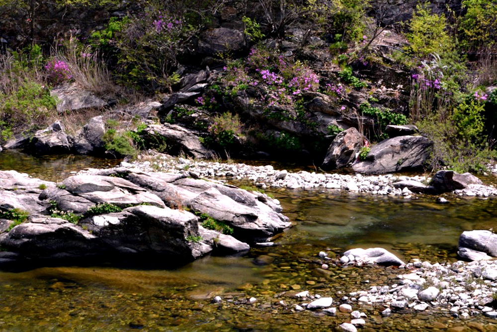 명지계곡도 4월 수달래꽃 절정기에는 꽃을 주변에 깔고 계곡 촬영을 하기 위해서