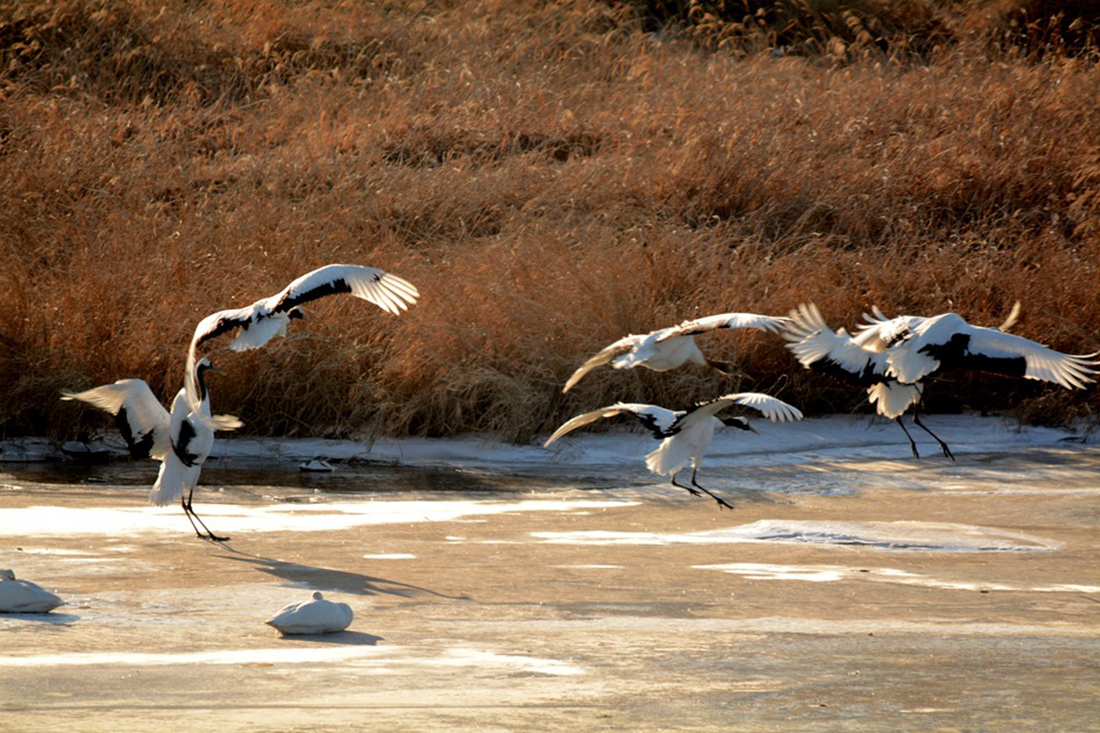 하얗게 눈덮인 철원 평야에서 우아하게 비상과 착지, 착수를 반복하며 월동을 하고 있는 두루미들의 모습은 너무도