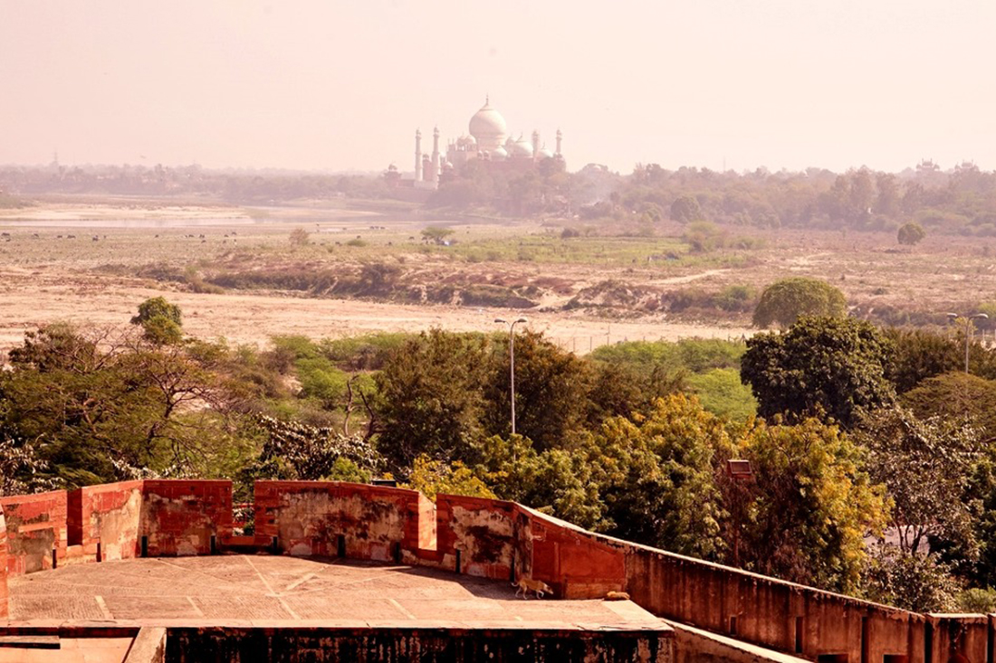 ▼ 궁내 감옥 테라스에서 저 멀리 타지마할이 보인다 ▼