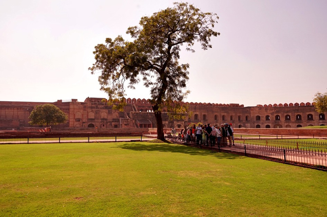 아그라성은 전부 적색 사암으로 만들어져 붉은 요새(Red Fort)라고도 불리운다. 해자와 높이 약 20m. 길이 약 2.5km의