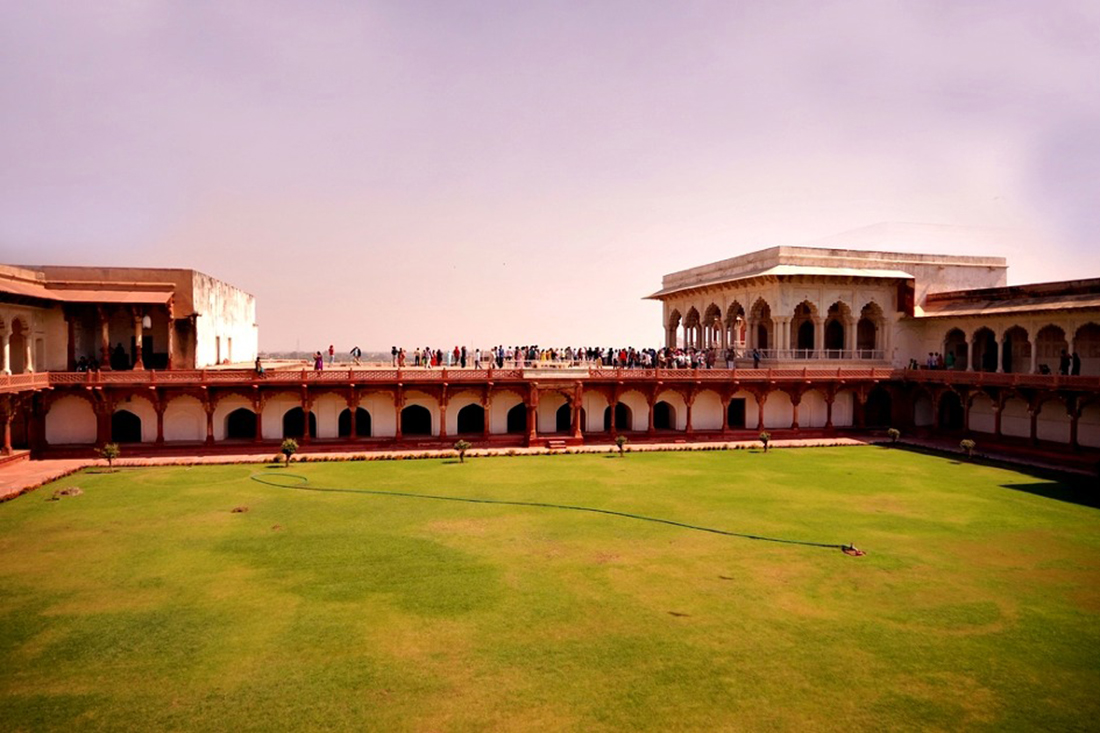 아그라성 테라스에서는 샤 자한이 말년에 힘을 잃고 아들 아우랑제브에 의해 궁내 감옥에 유폐되어 지내던 곳이기도 하다