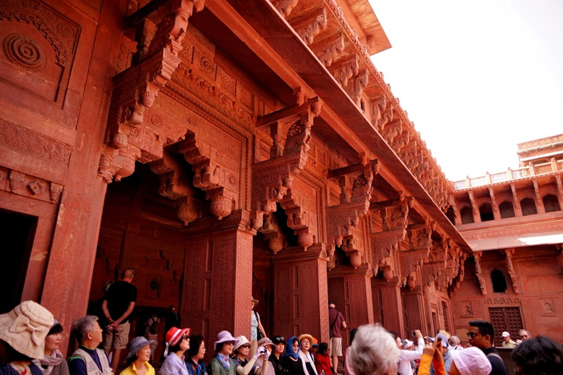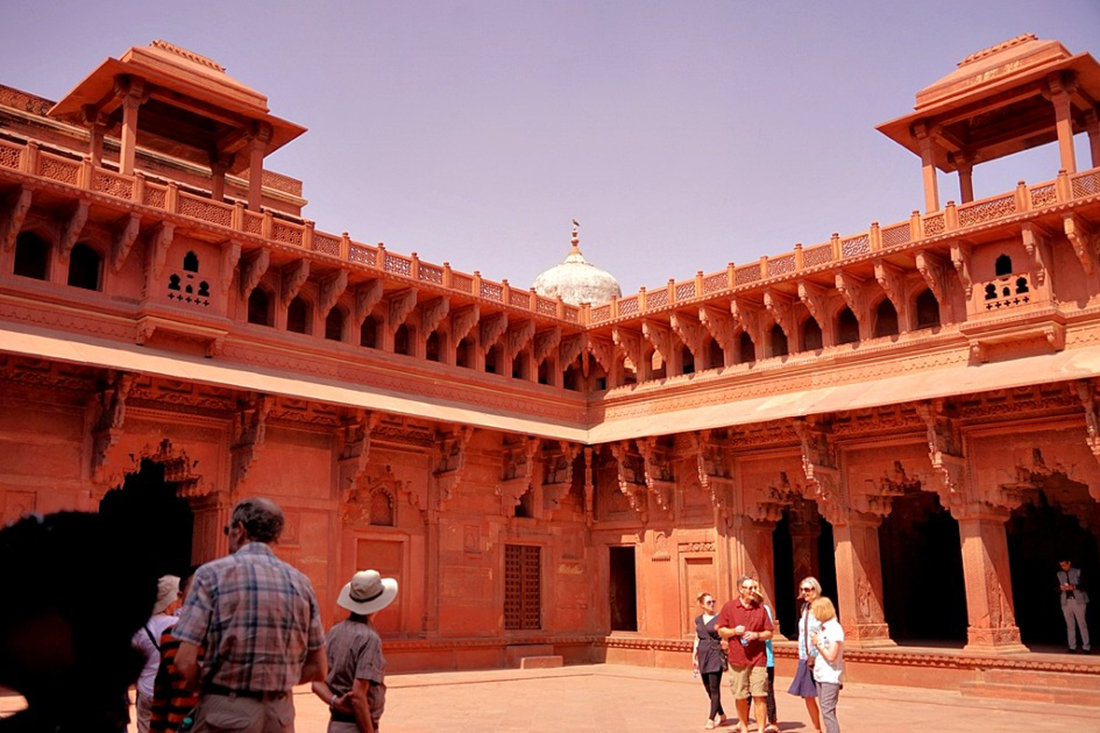아그라성은 무굴 제국의 화려한 요새로 세계문화유산으로 등재된 인도의 대표 건축물의 하나이다