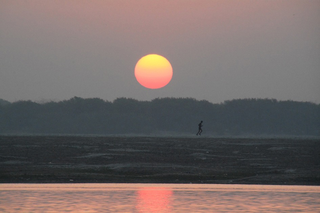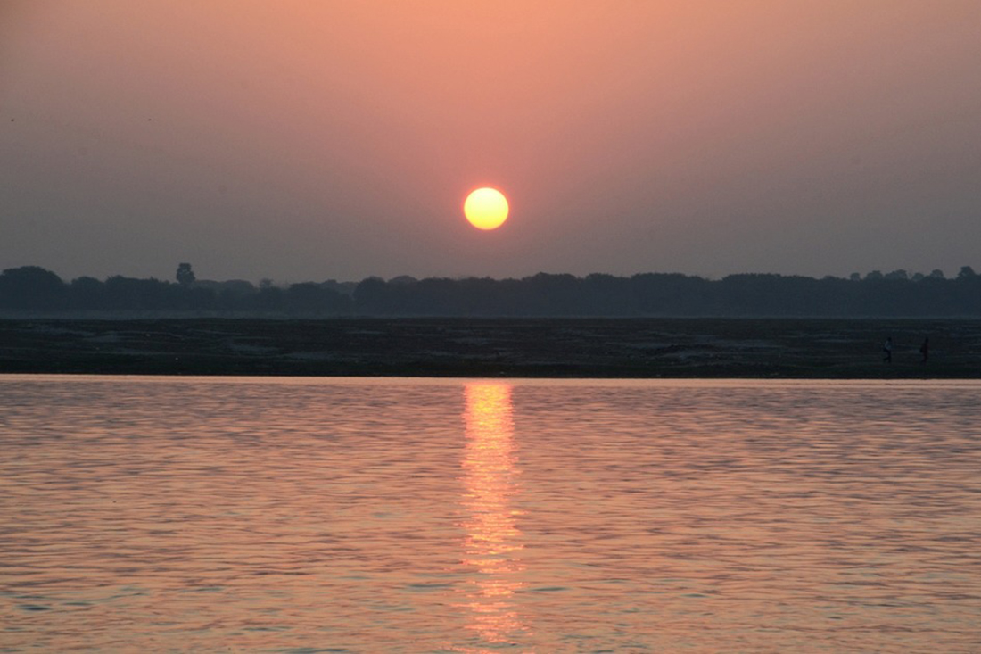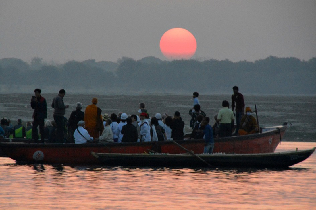 동녘하늘이 붉으스레 물들며 성지 갠지스의 하루가 장엄하게 밝아오고 있다