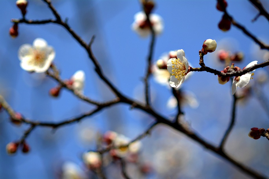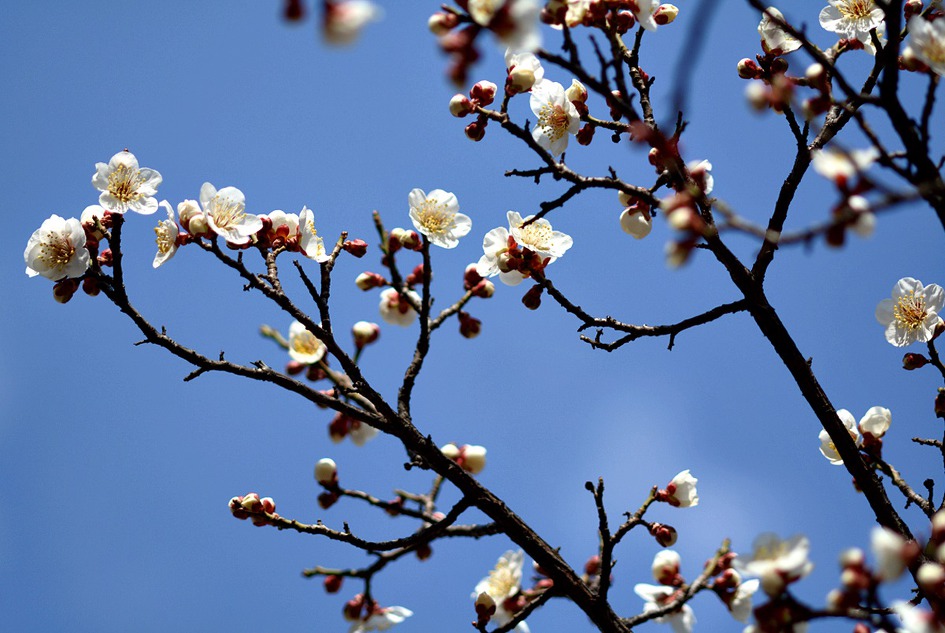 춘삼월 봄을 알리는 소리... 단지내 자그마한 정원에 하얀 백매가 청초하게 꽃망울을 터트리고 있다.