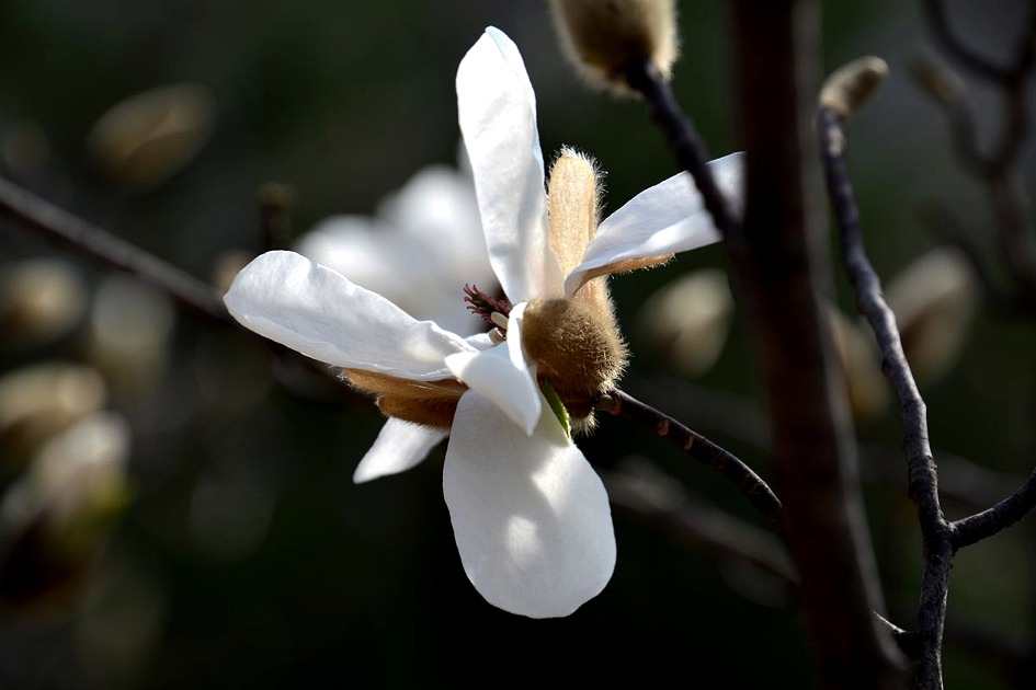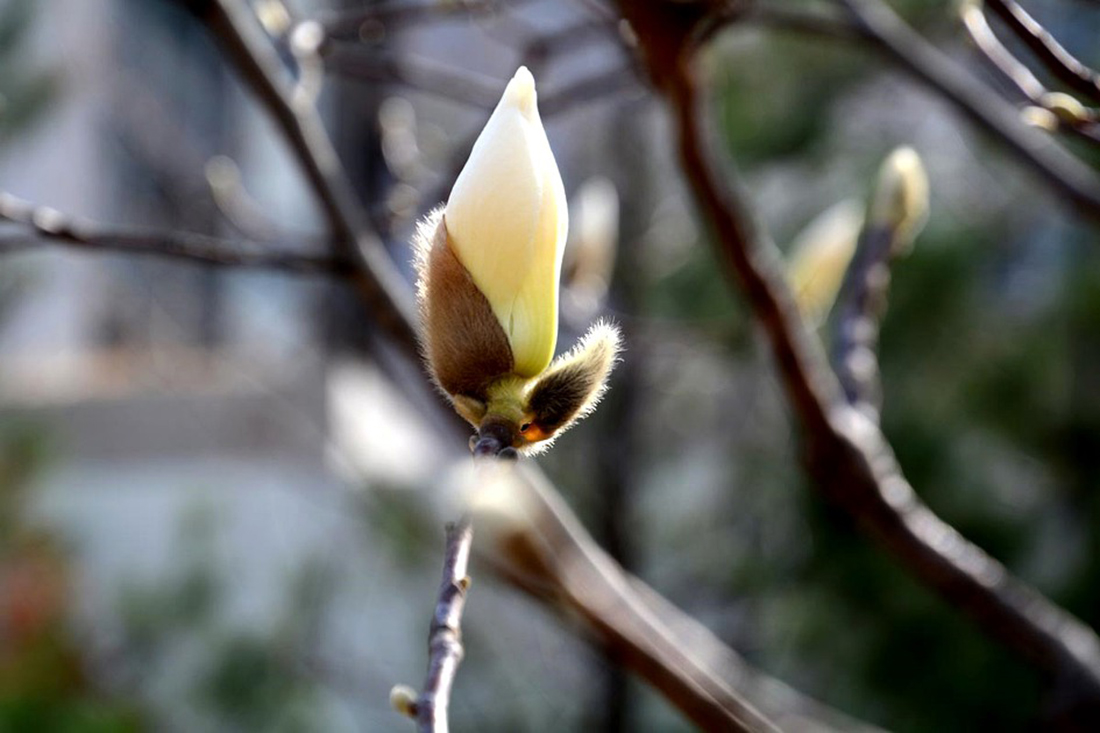 4월 봄의 절정기를 맞아 단지내 자그마한 정원에 목련화가 탐스럽게 꽃망울을 터트리고 있다.