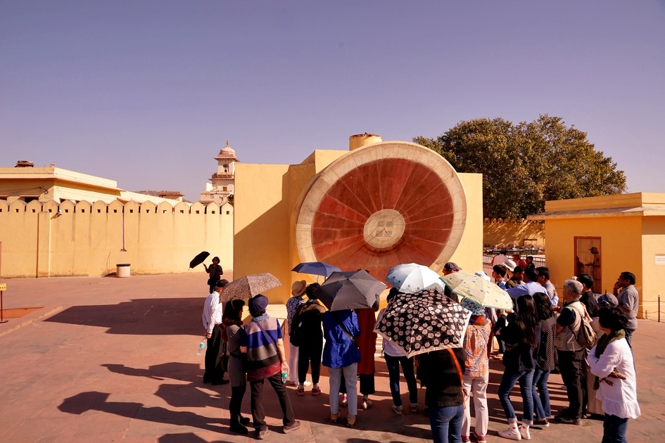 세계에서 가장 큰 해시계로 단면은 자이푸르의 위도와 동일하게 27도 기울어져 있고 작은 돔 모양의 전망대는