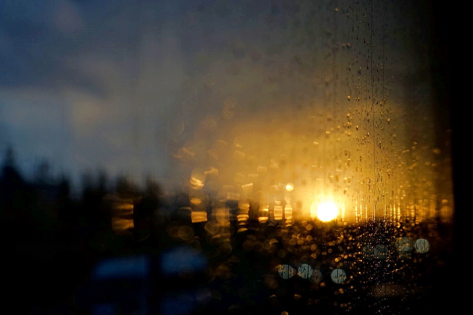 다른 한쪽에선 차창밖으로 비를 뿌리고... (달리는 버스에서..)
