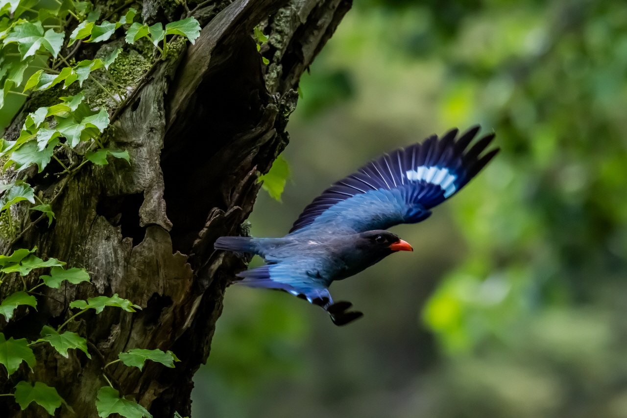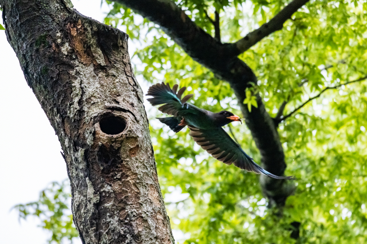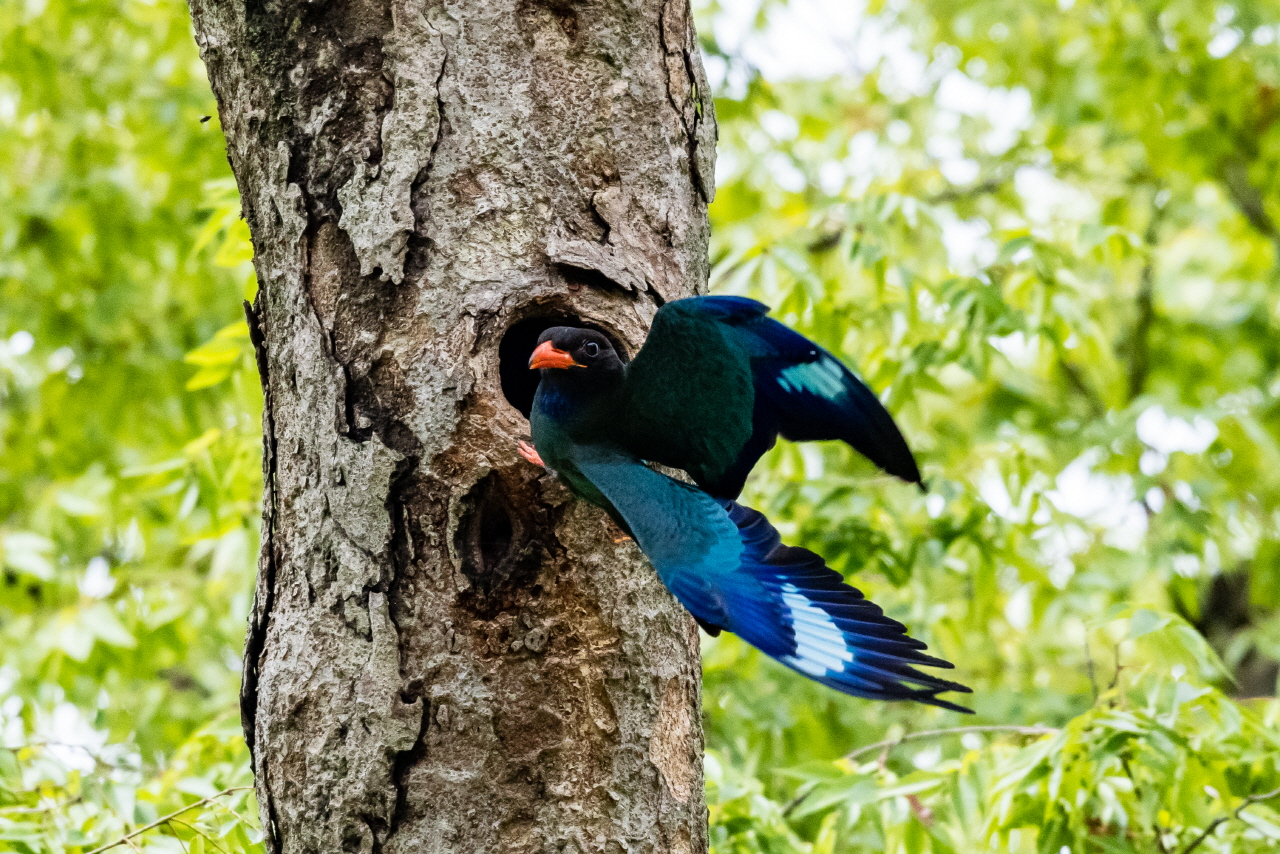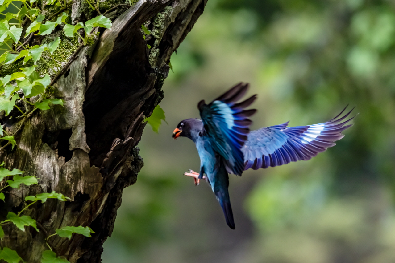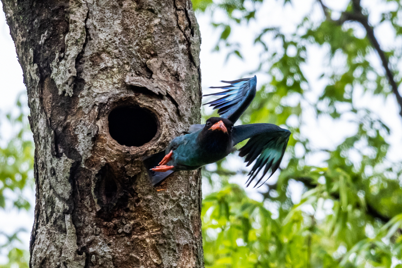 경기 파주 주변 숲 속에 파랑새가 둥지를 틀고 새끼를 돌보고 있다는 소식을 듣고