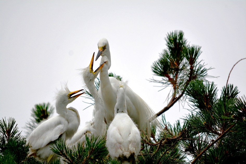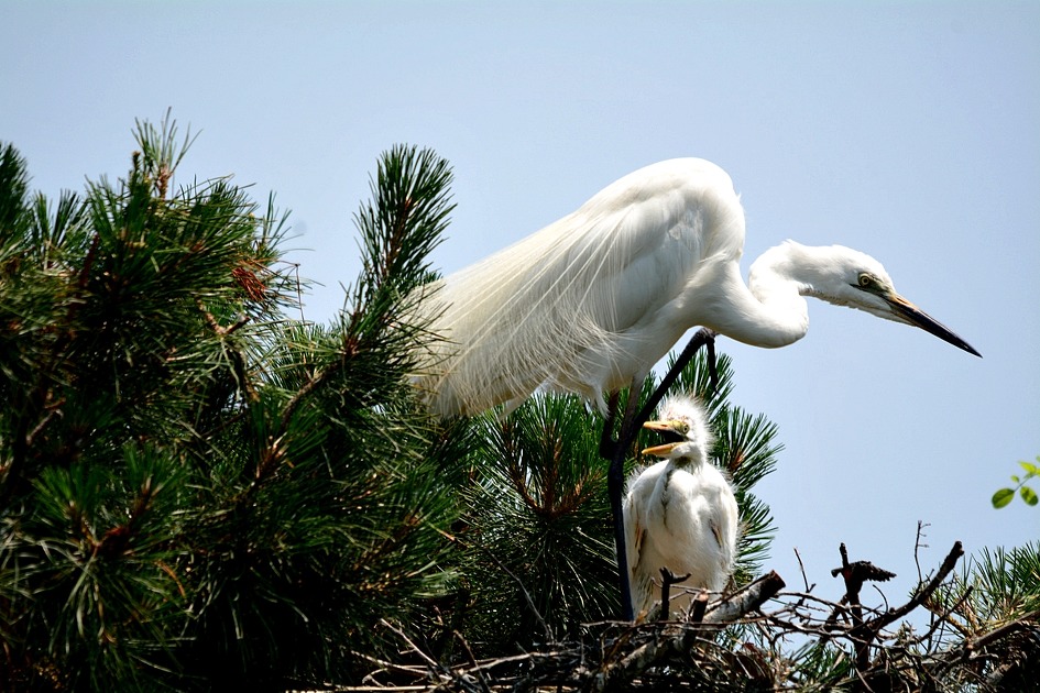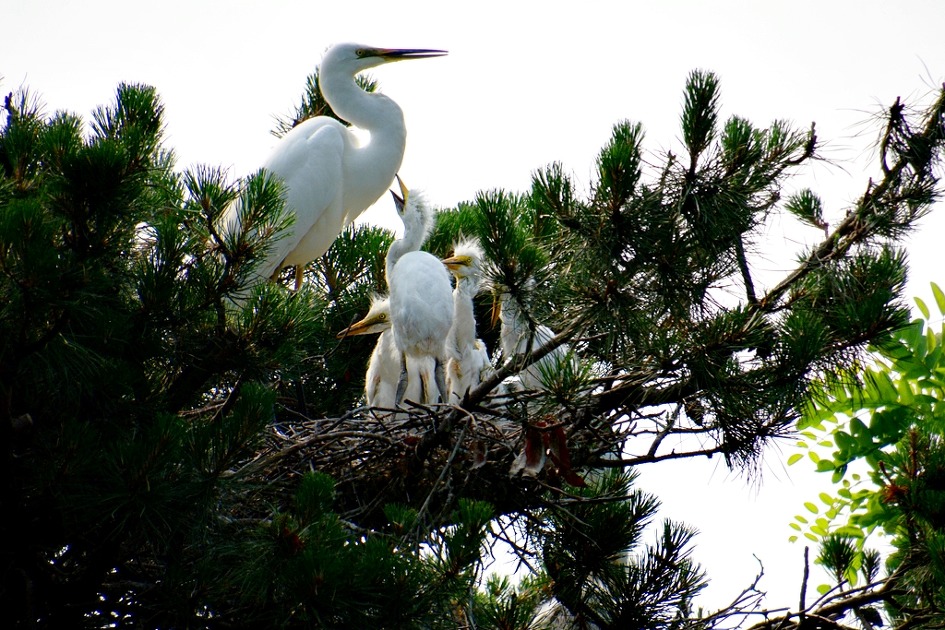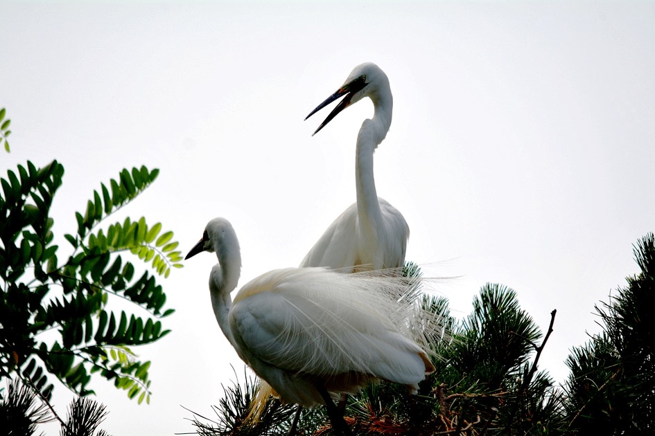 알을 품어 부화를 마친 백로들이 수컷과 암컷이 한 쌍이 되어 서로 부리를 부비며 사랑을 나누기도 하고