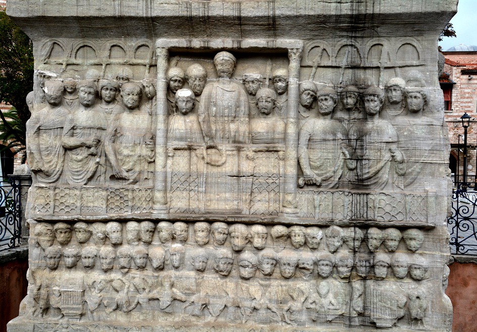 가운데에 있는 뱀머리의 기둥은 셀팬타인 기둥(Serpentine)으로, 479년 델피의 아폴론 신전에서 가지고 온 것으로