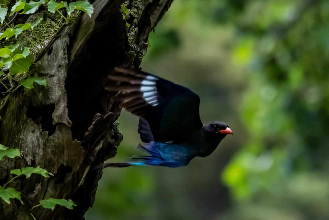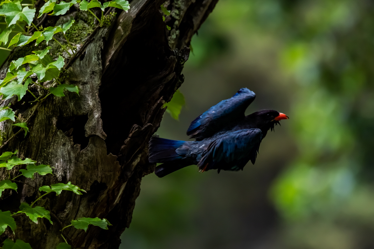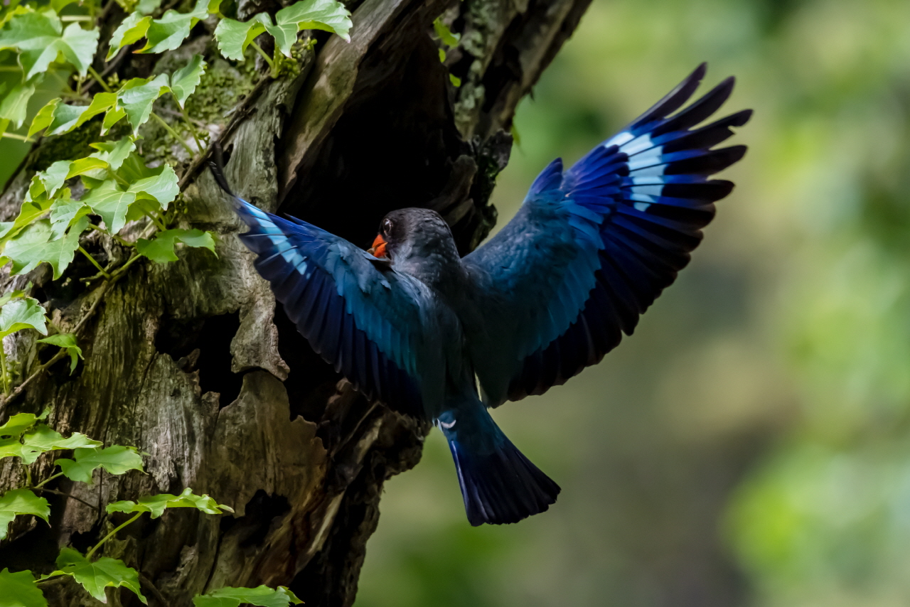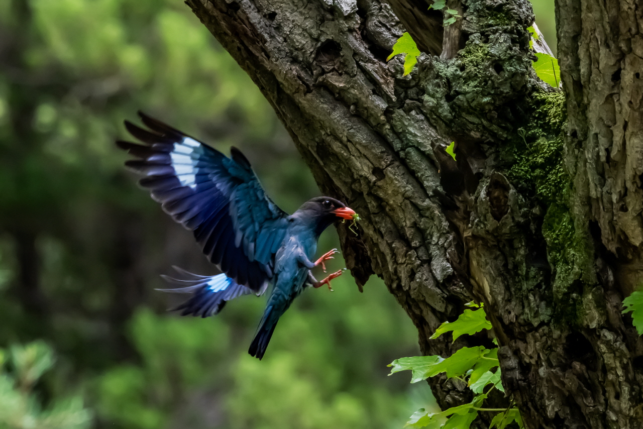 강원 춘천 남이섬 숲 속에 파랑새가 둥지를 틀고 새끼를 돌보고 있다는 소식을 듣고