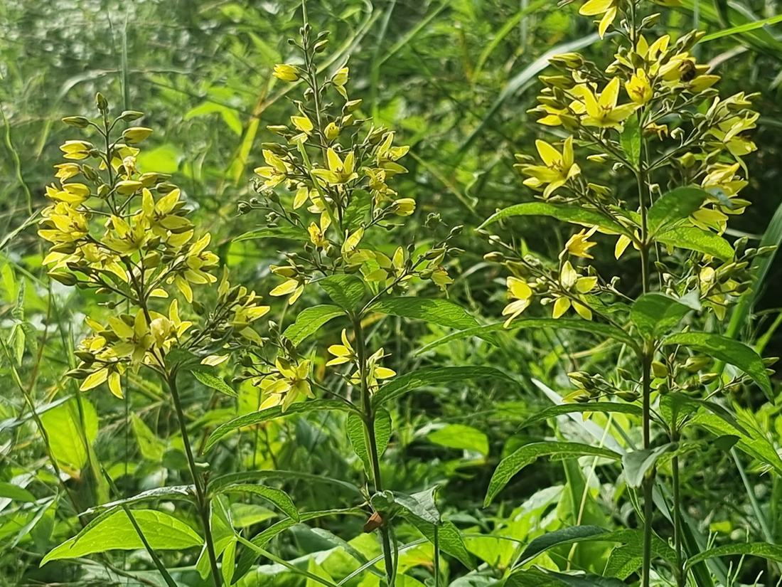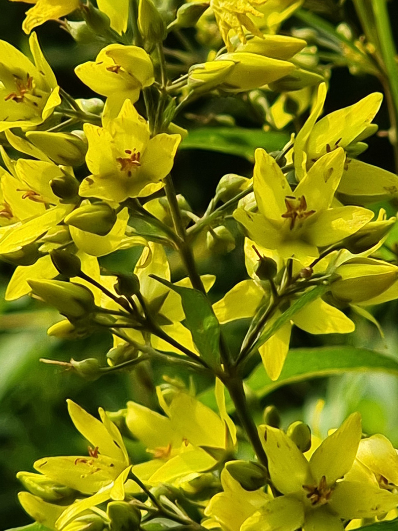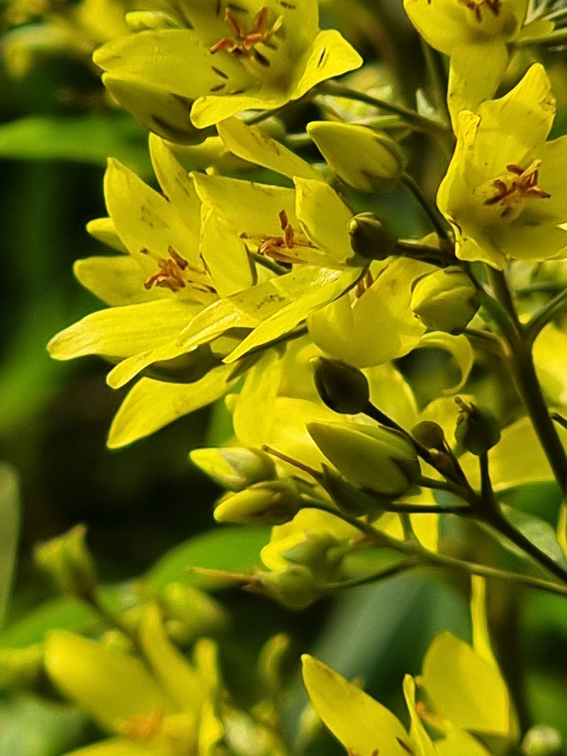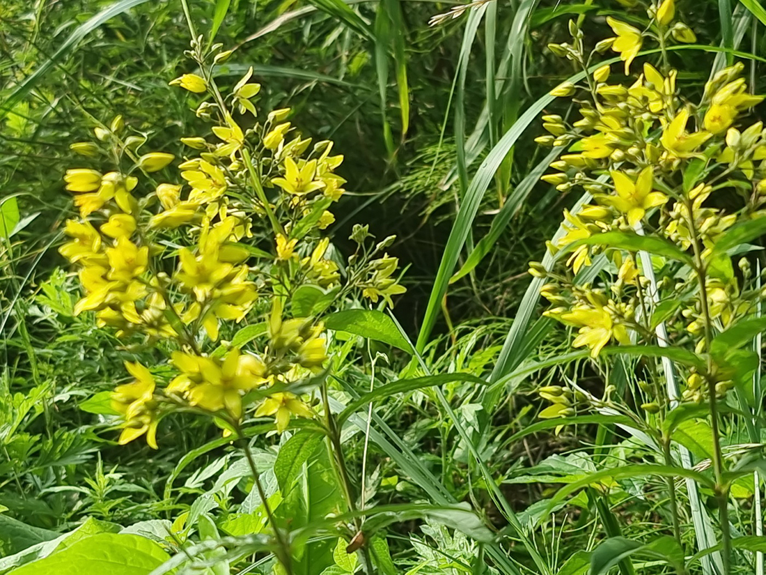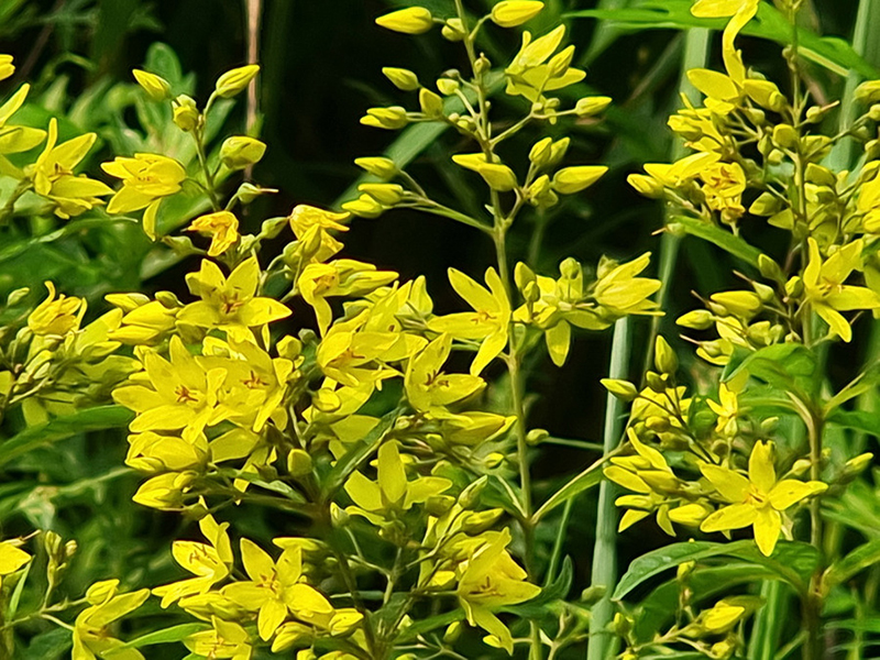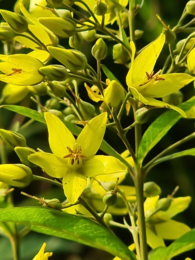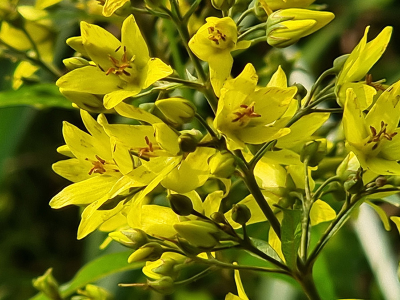 꽃은 6-8월에 줄기 끝의 원추꽃차례에 달리며, 노란색을 띄고 꽃차례는 잎 뒷면 아래쪽과 더불어 샘털이 난다.