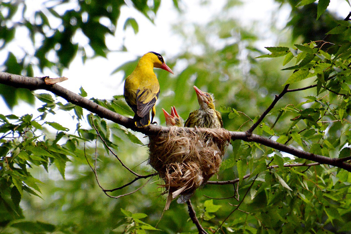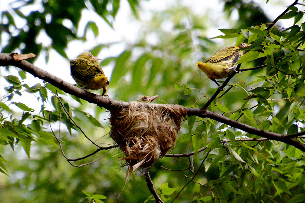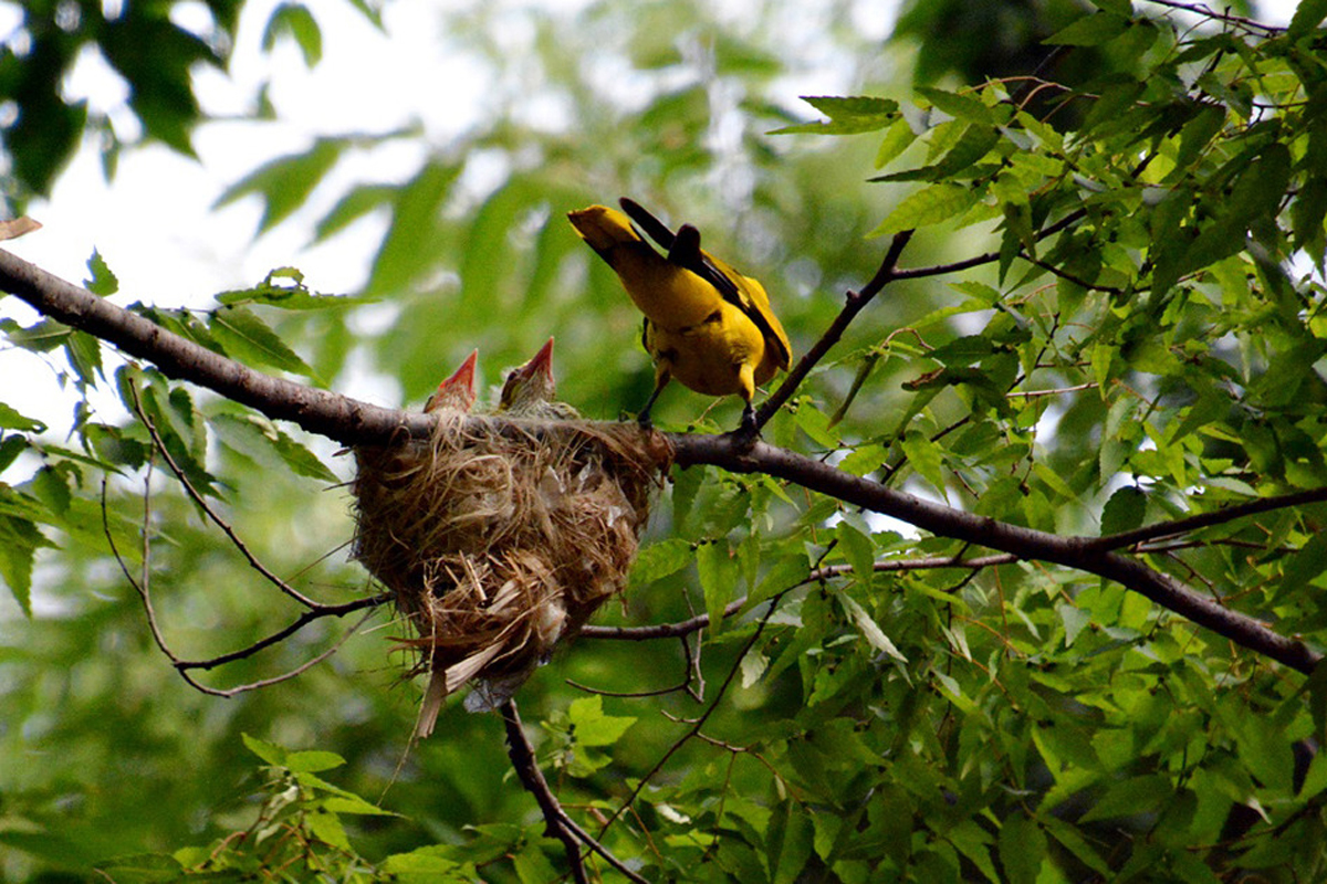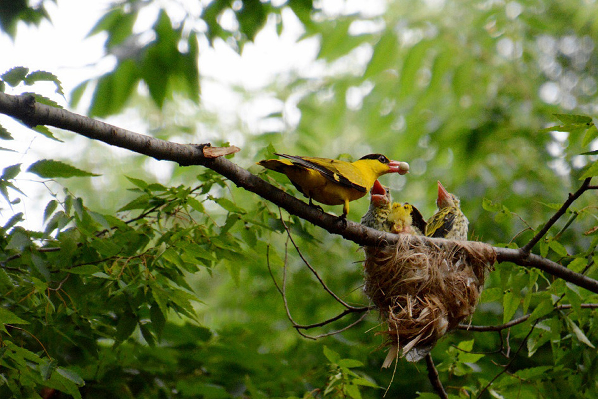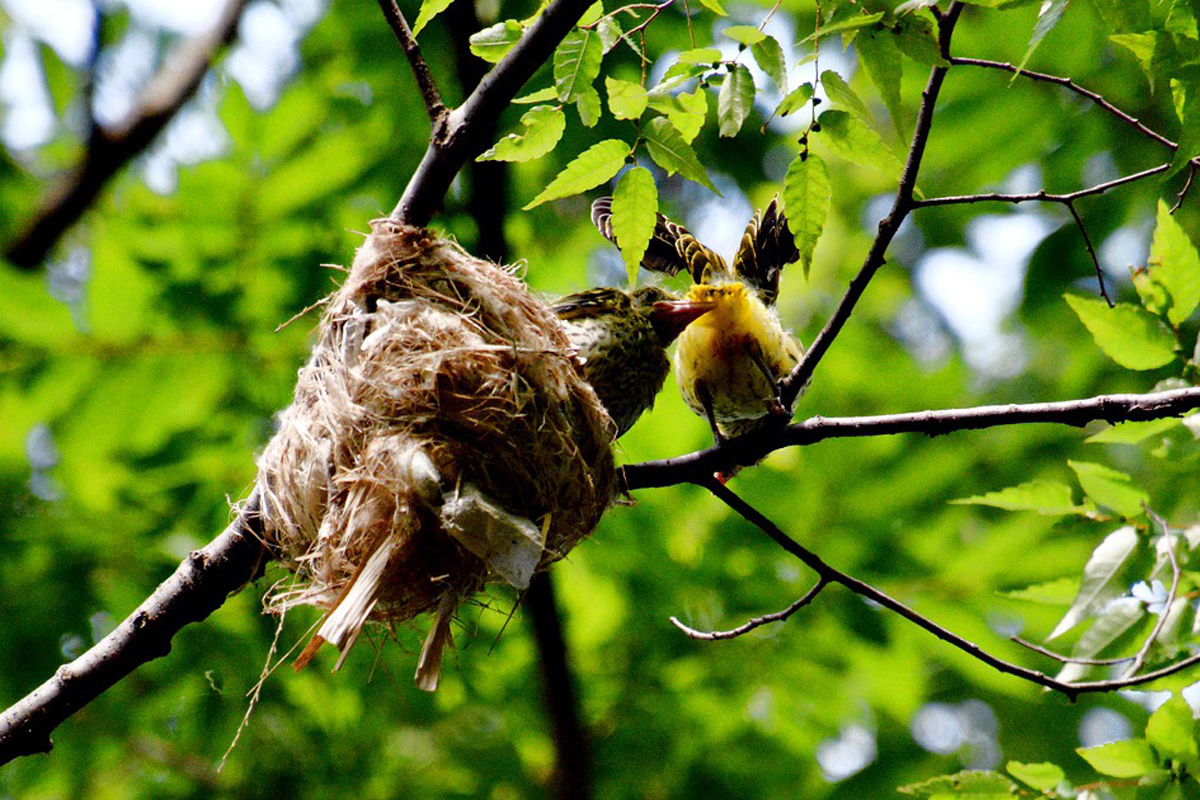 경기도 남양주시 교외 한 숲 속에 꾀고리가 둥지를 틀고 새끼를 돌보고 있다는 소식을 듣고 사우와 함께