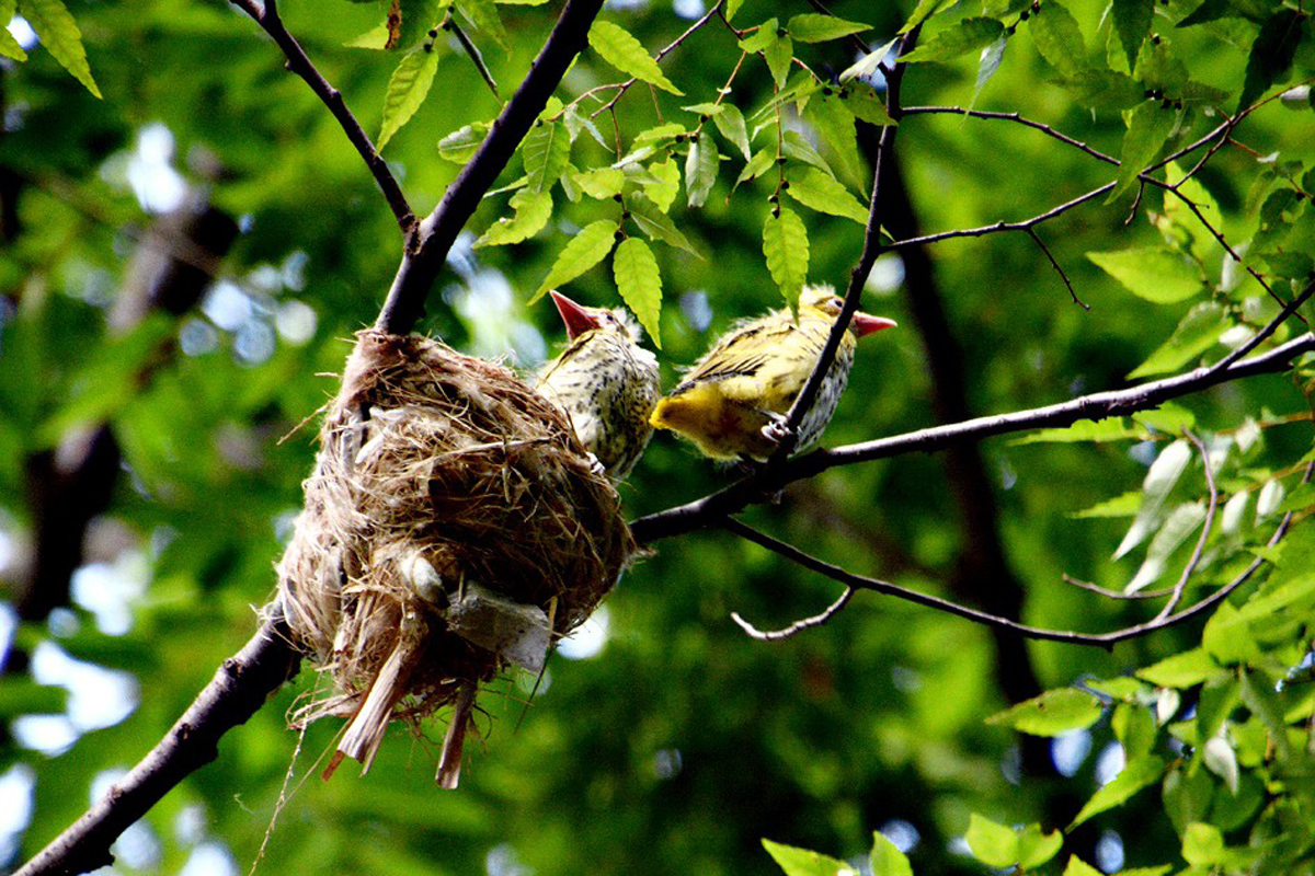 이윽고 새끼들은 몸을 간신히 가눈채로 뒤뚱거리며 한 마리씩 둥지 밖으로 나와 둥지 옆 나뭇가지를 타고
