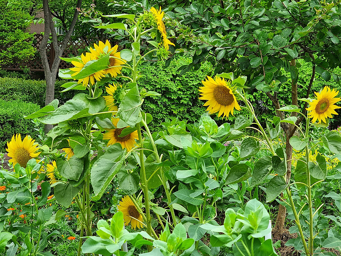 오늘도 아침산책을 마치고 얼마않되는 우리 아파트 정원의 해바라기를 그런대로 폰으로 몇장 옮겨보았다