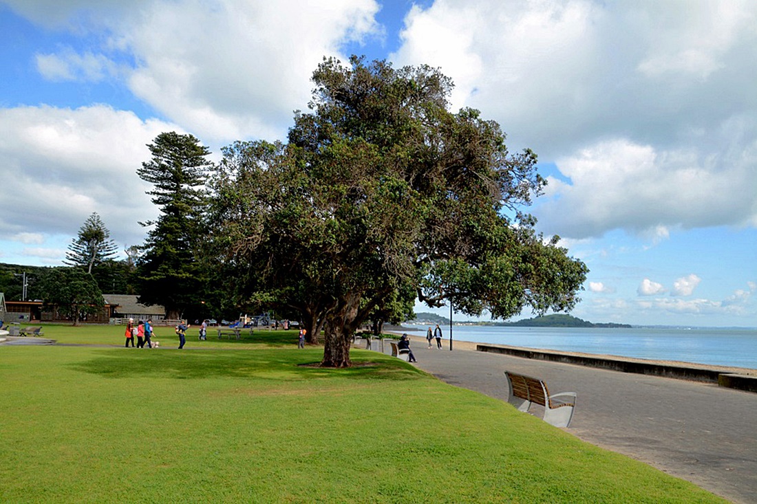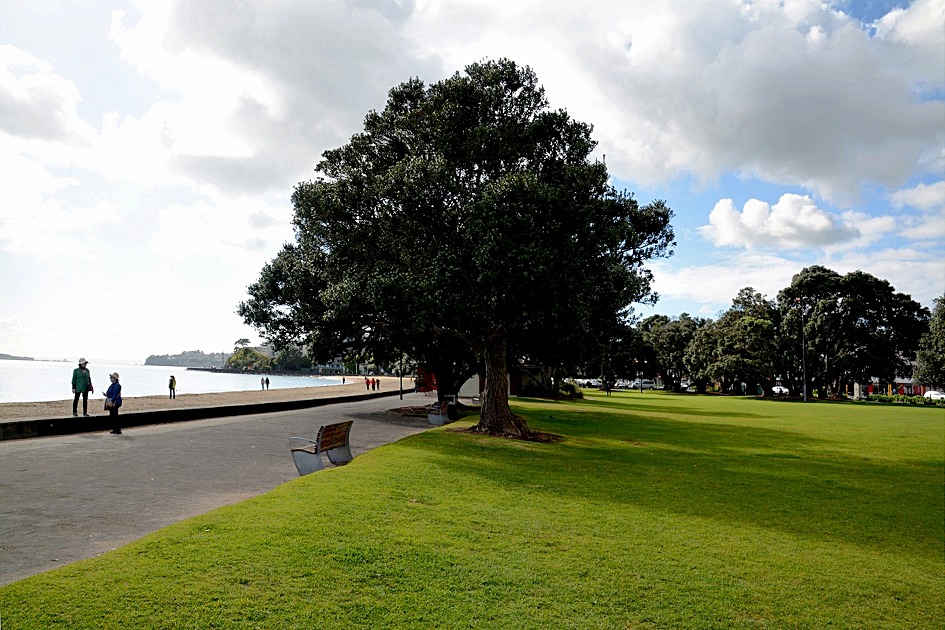 미션베이는 오클랜드 시티에서 그리 멀리 떨어져 있지 않고 드물게도 잔디광장을 끼고 있는 해변이다.