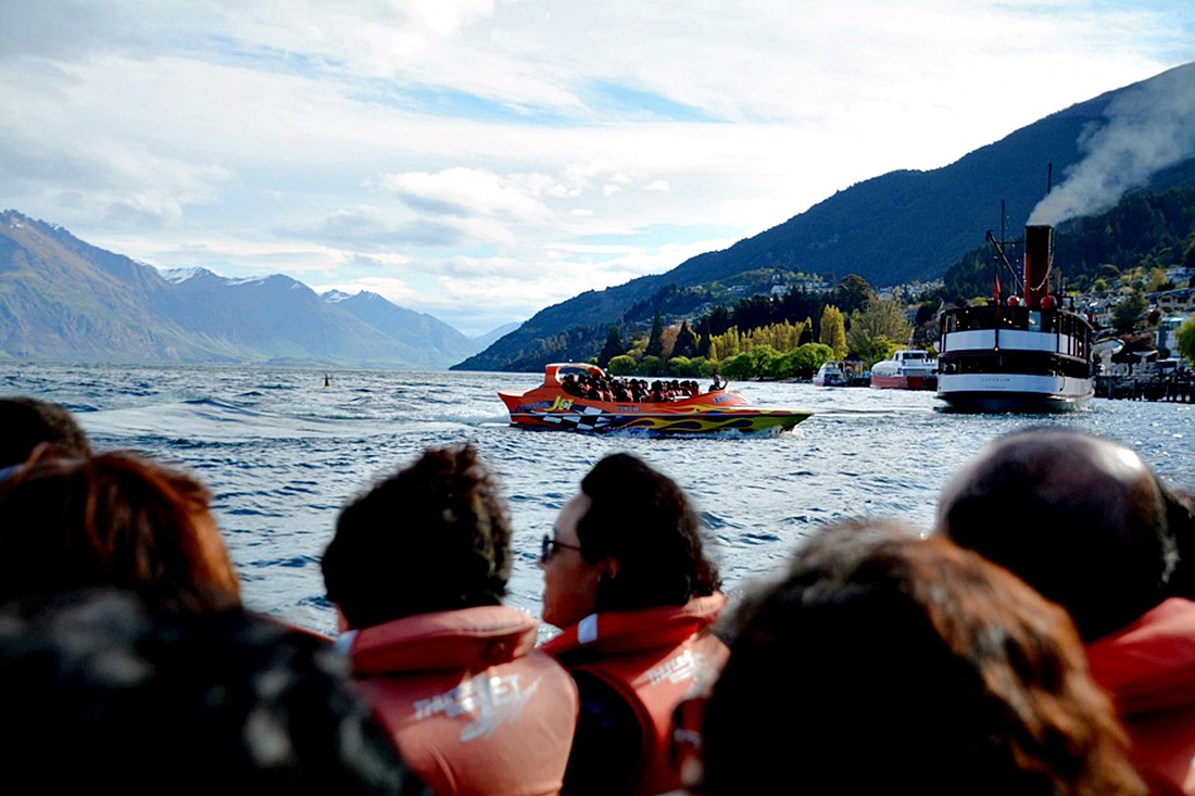 퀸스타운 관광 첫날은 옵션으로 제트보트(Jet boat)를 타고 쾌속으로 질주하며 약 한시간 가량 와카티푸 호수 주변을