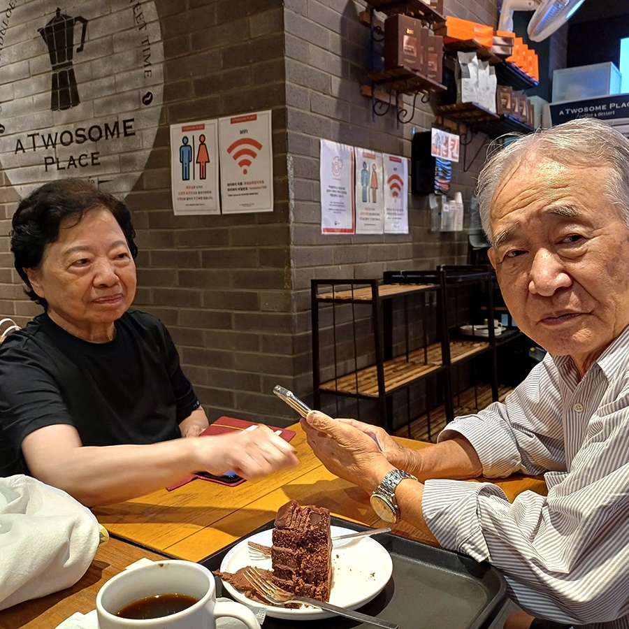 아이들을 다 보낸 후 함께 사는 딸이 대청소를 한다고 두 늙은이는 잠시 바깥