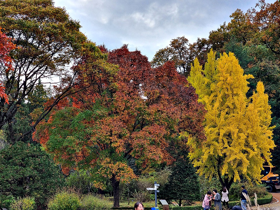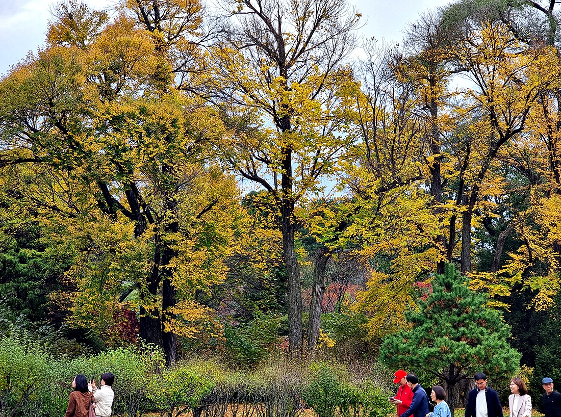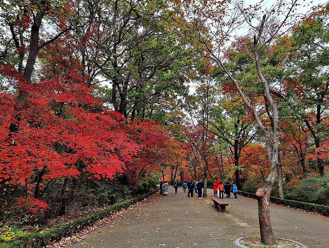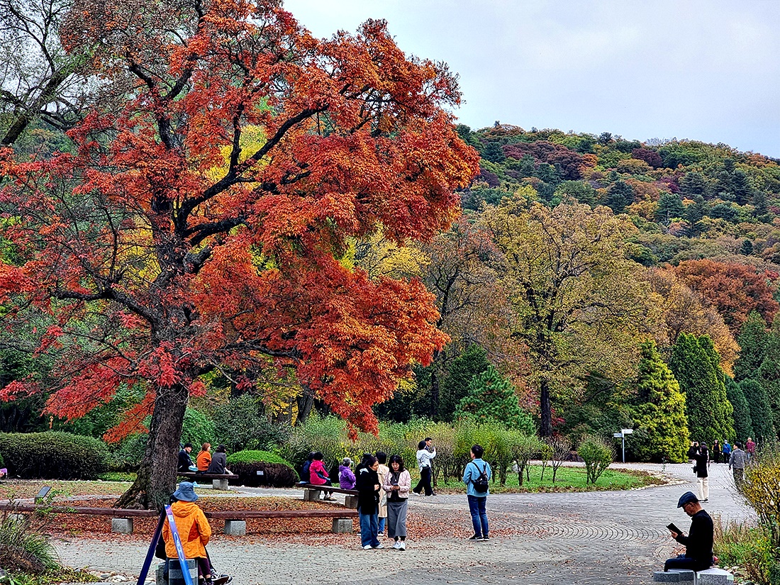 날씨정보와는 달리 하늘은 흐렸지만 청명하고 시원한 공기에 단풍이 절정을 이루고 가을나들이 인파가 넘쳐나고 있다.