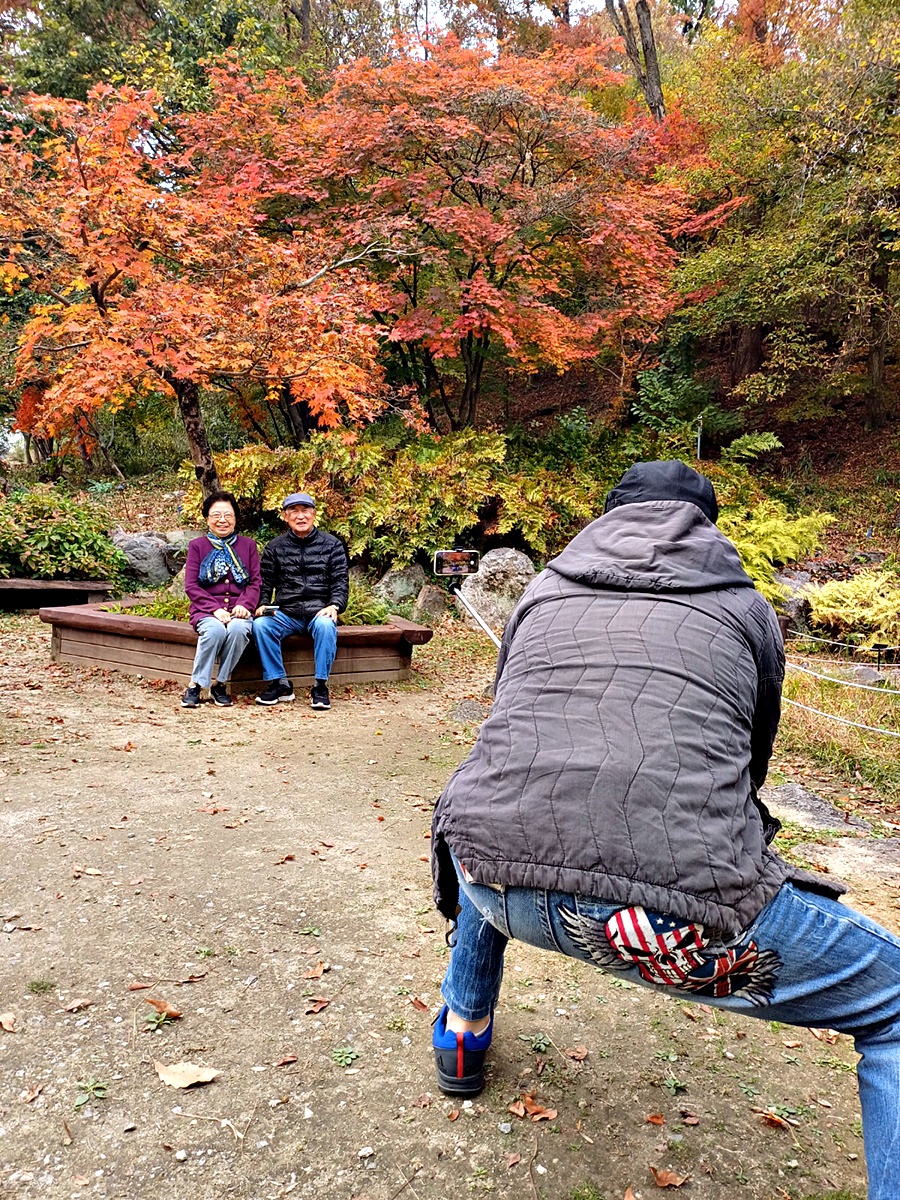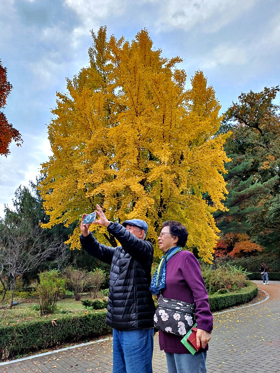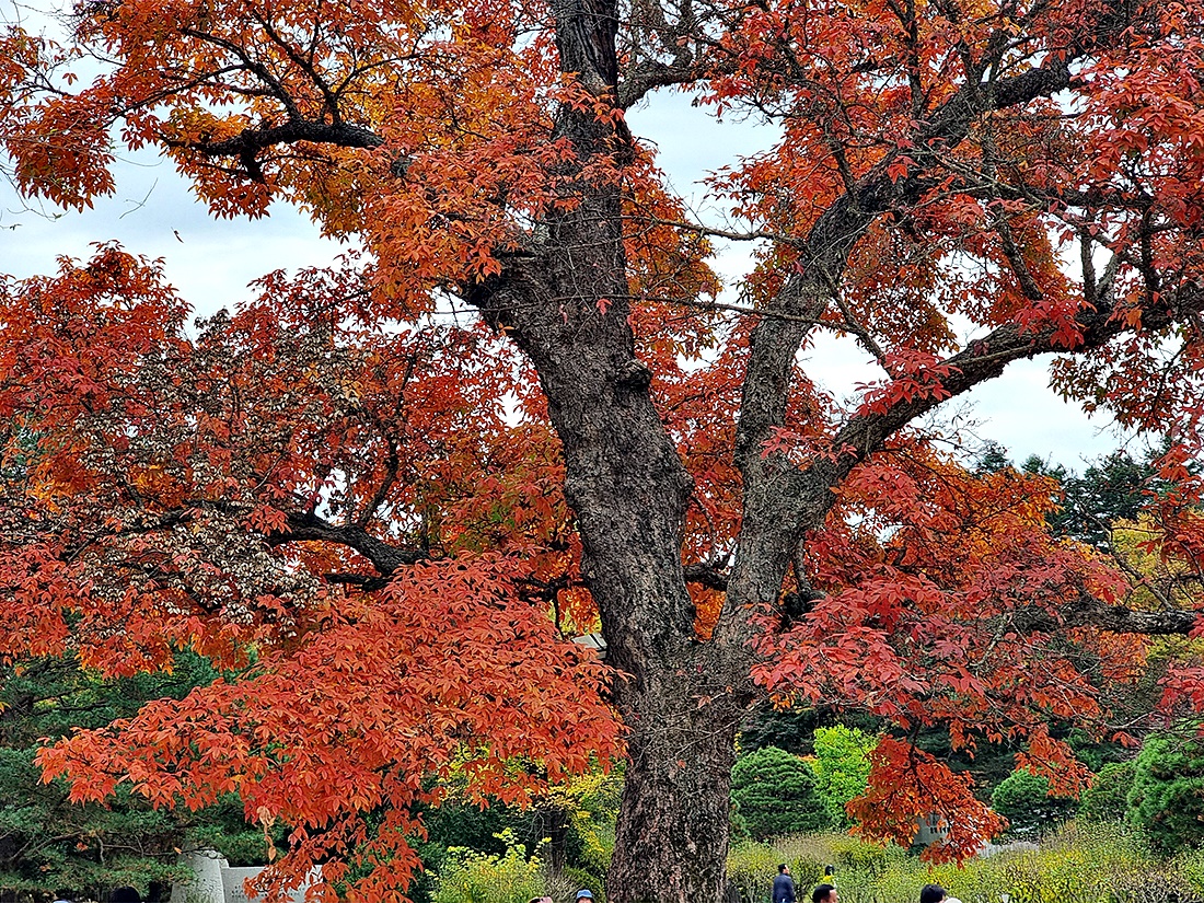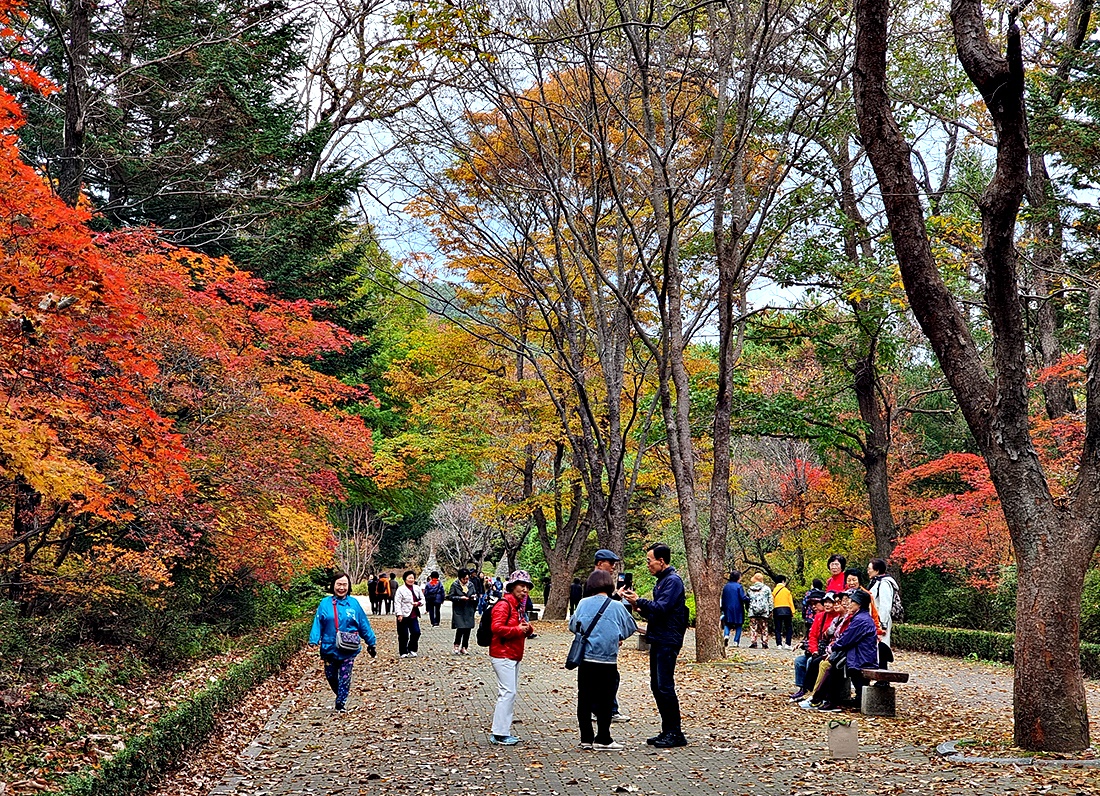 날씨정보와는 달리 하늘은 흐렸지만 청명하고 시원한 공기에 단풍이 절정을 이루고 가을나들이 인파가 넘쳐나고 있다.