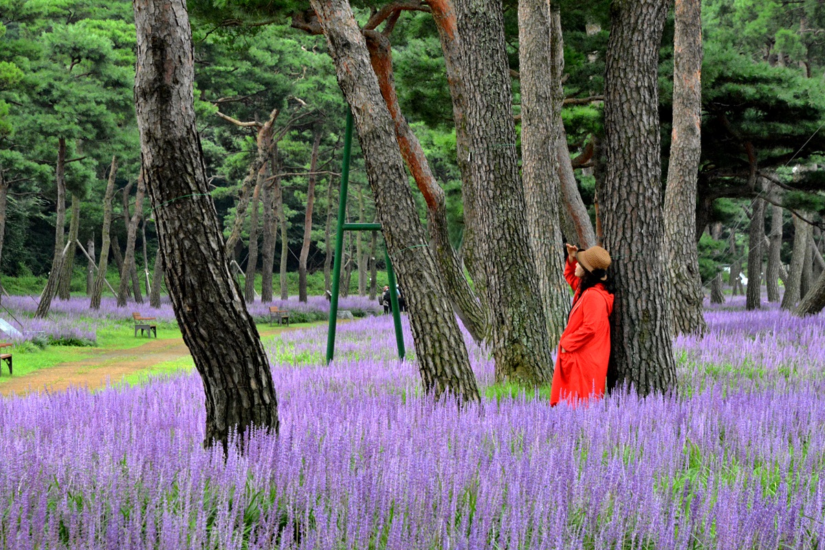 요즘 장관을 이루고 있다. 5km에 달하는 노송지대 산책로를 따라 걸으며 소나무에서 나오는 피톤치드와 맥문동의