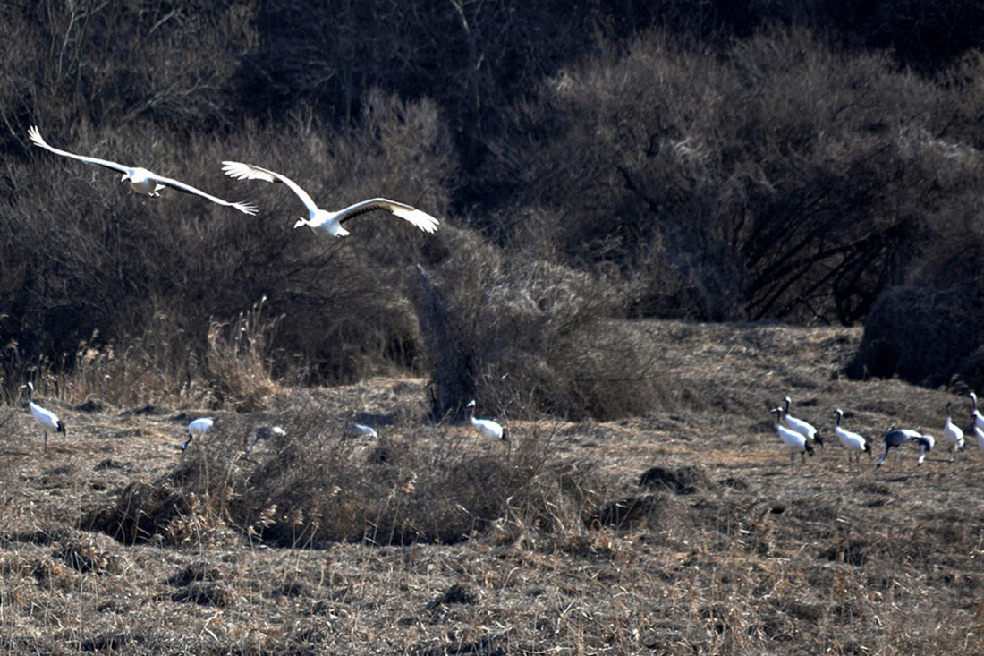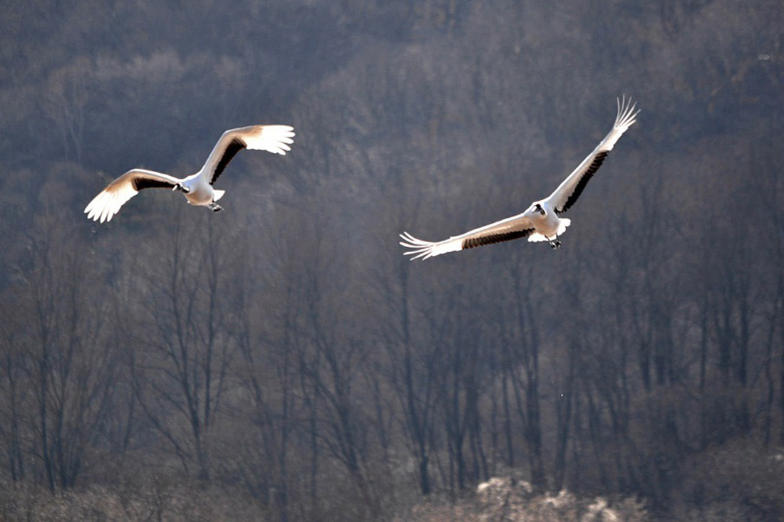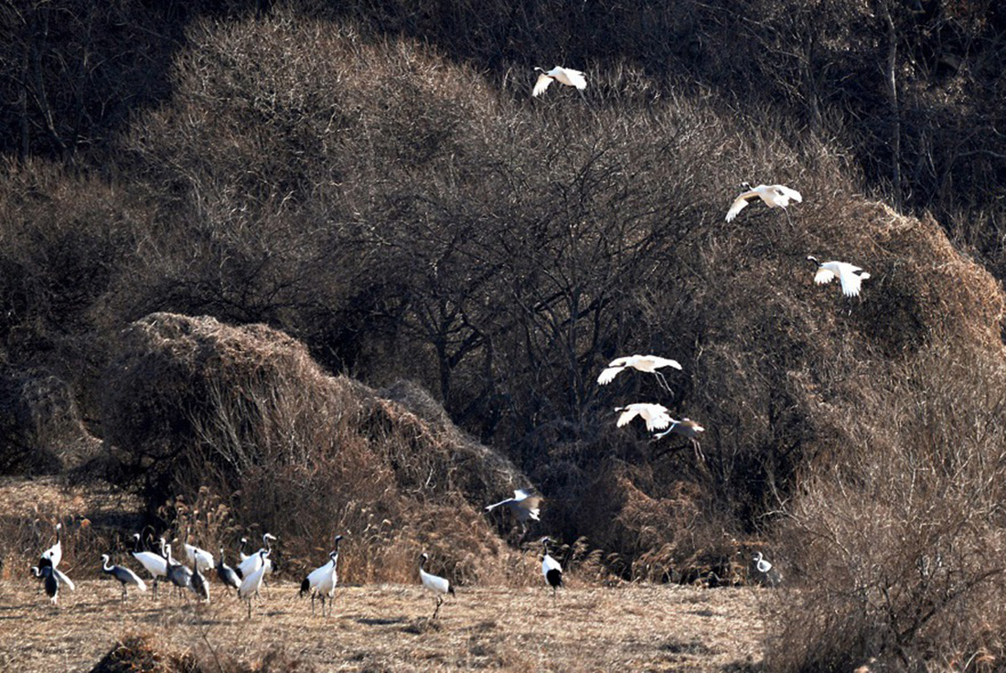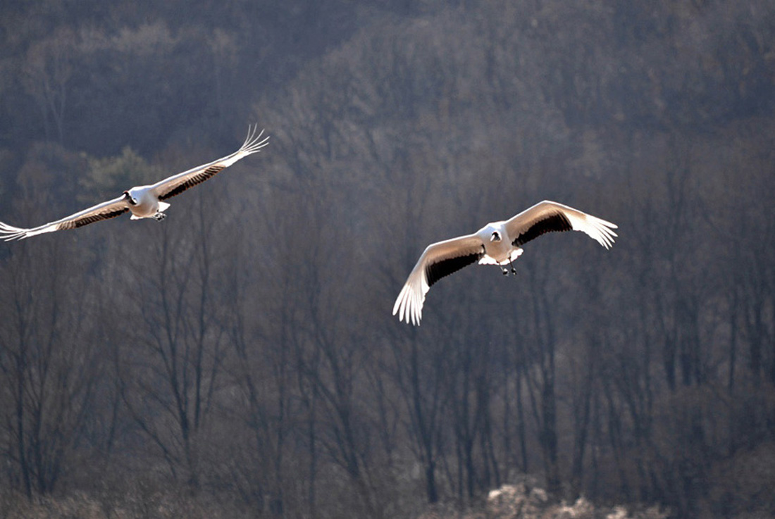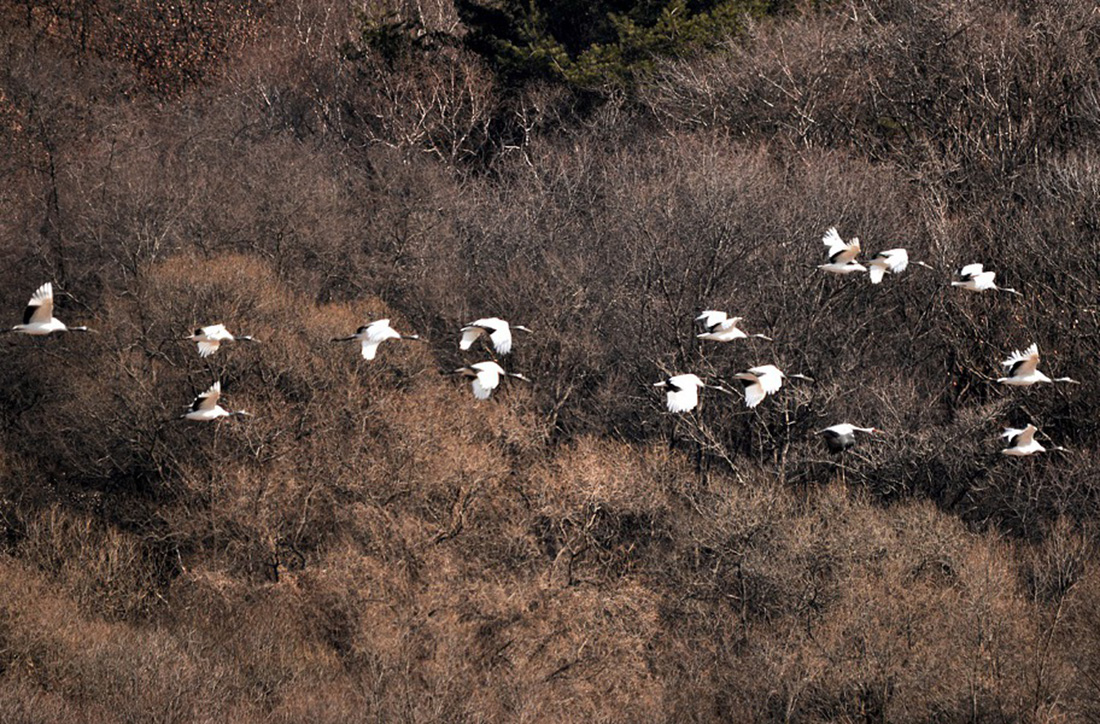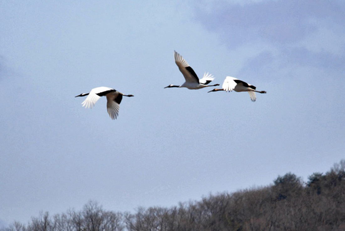 꼭 두루미나 고니같은 보호조가 아니더라도 기러기, 오리같은 다양한 철새들의 군무(群舞) 모습도 장관이다.
