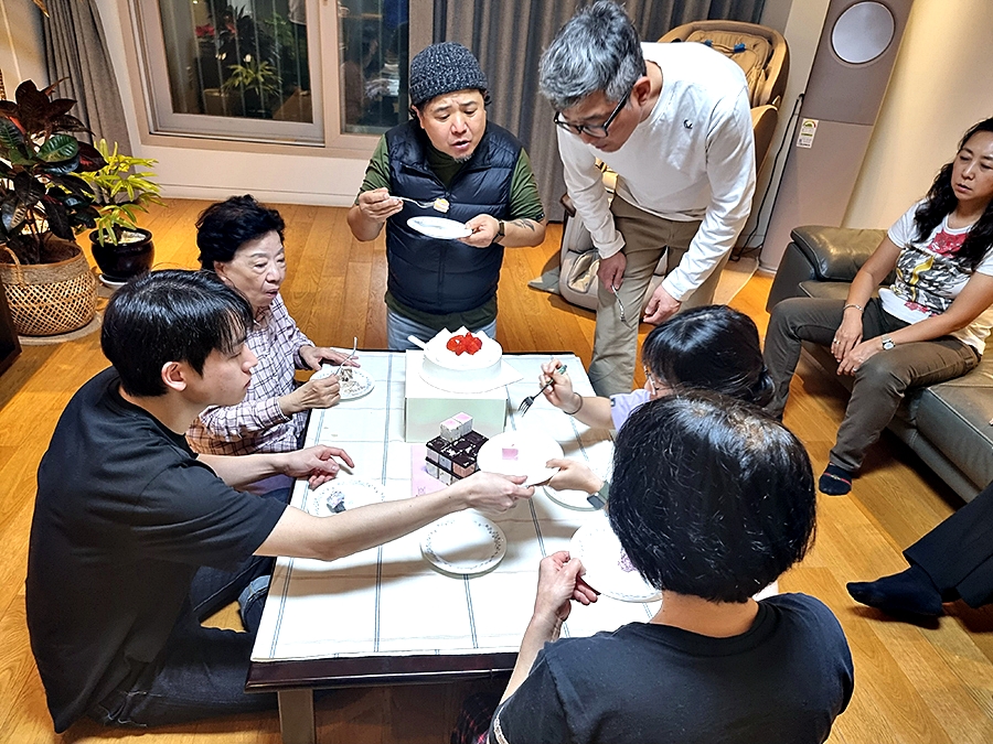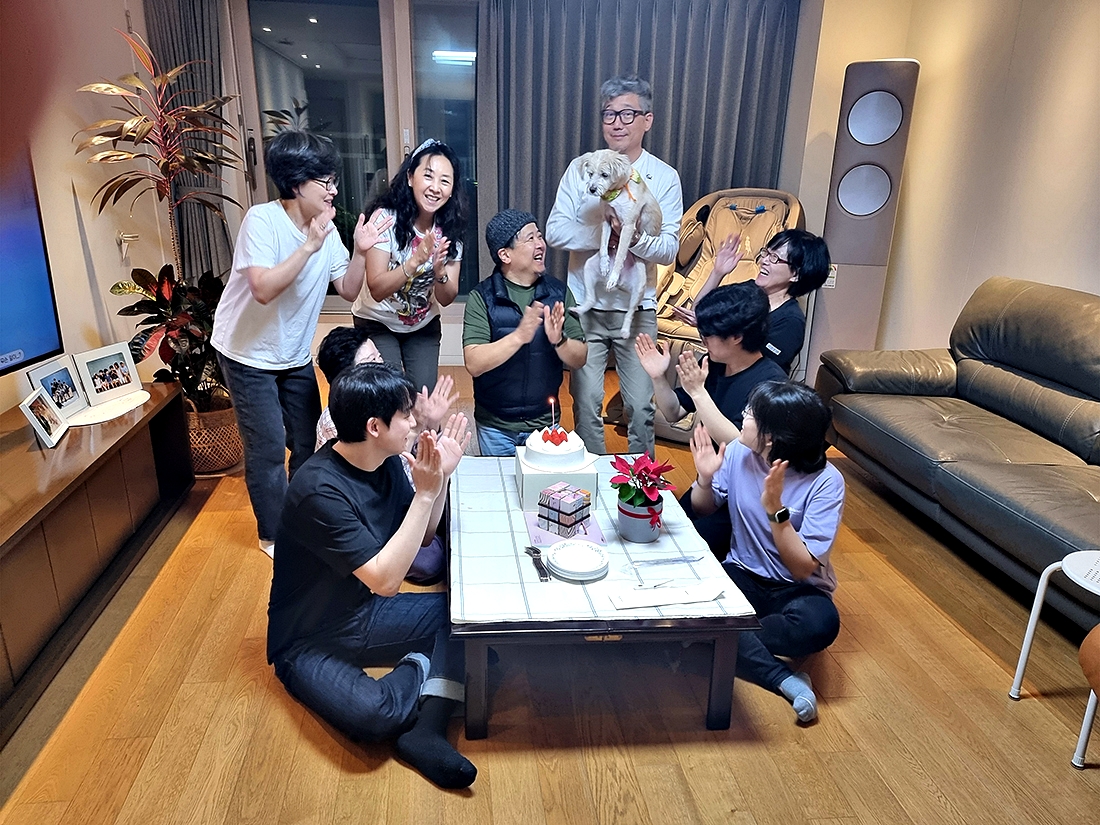 가족대표 산하 15명 식구중 외국 체류등 불가피한 일이 있는 녀석 5명을 뺀 10명이 늙은이 누거에