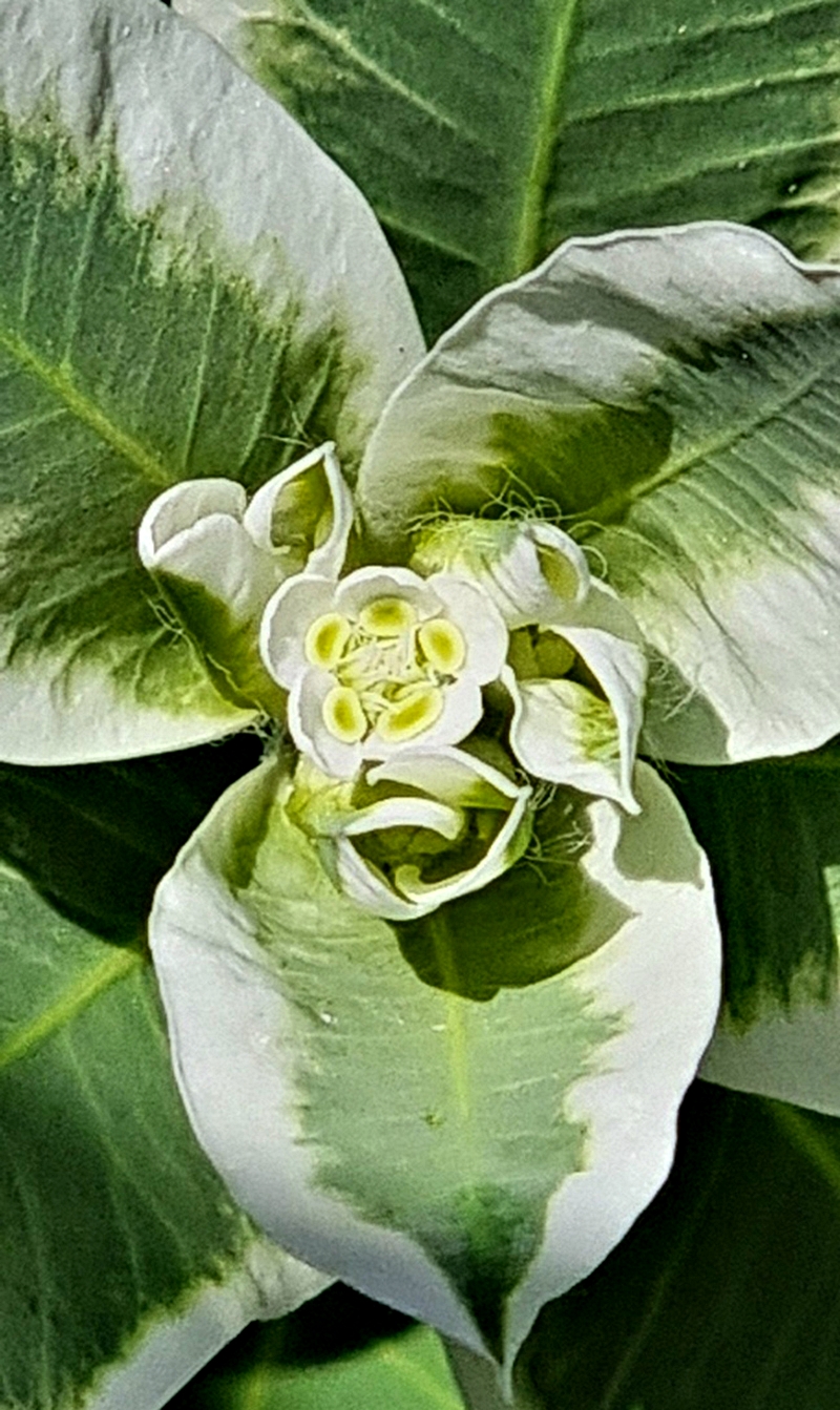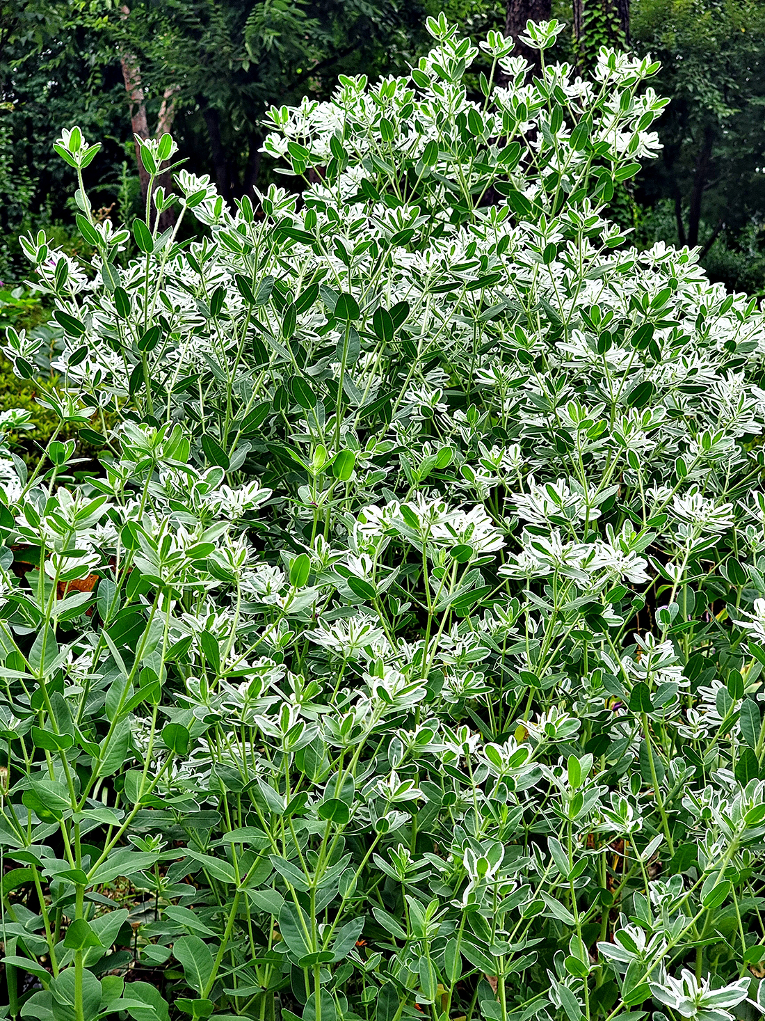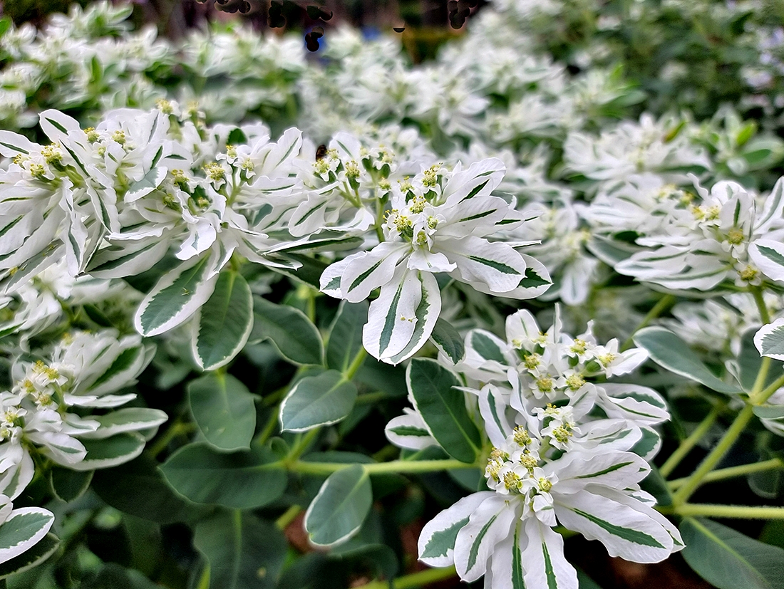 설악초는 꽃보다는 하얀 무늬가 줄로 들어있는 잎이나 줄기가 관상 포인트라고 할 수 있다.