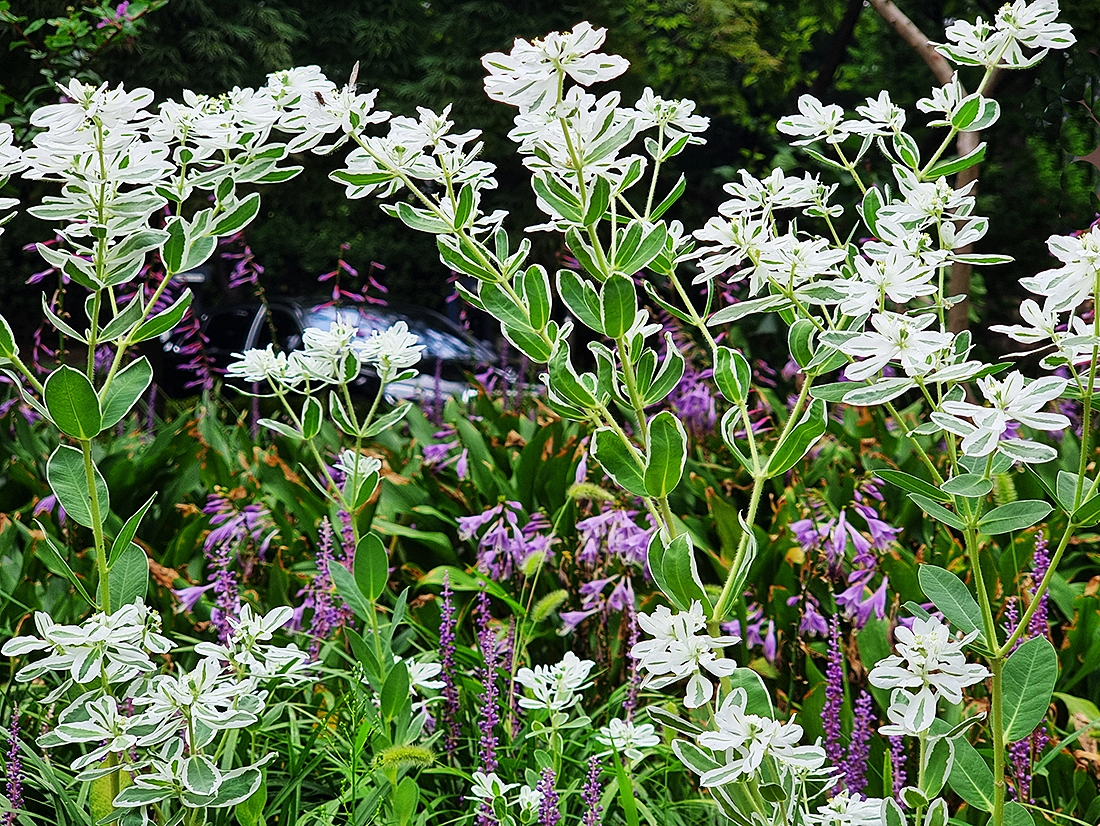 배롱나무꽃과 절정기의 설악초가 한데 어울어져 있는 풍경이 무척 아름답다. (촬영일시 : 25년 08월 18일)