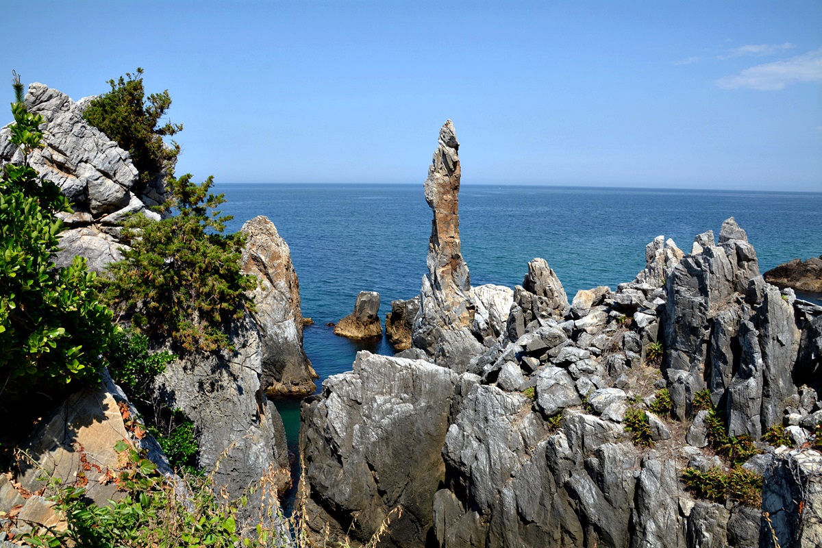 해안절벽과 동굴, 칼바위, 촛대바위 등의 크고 작은 바위섬이 장관을 이루고 있으며,