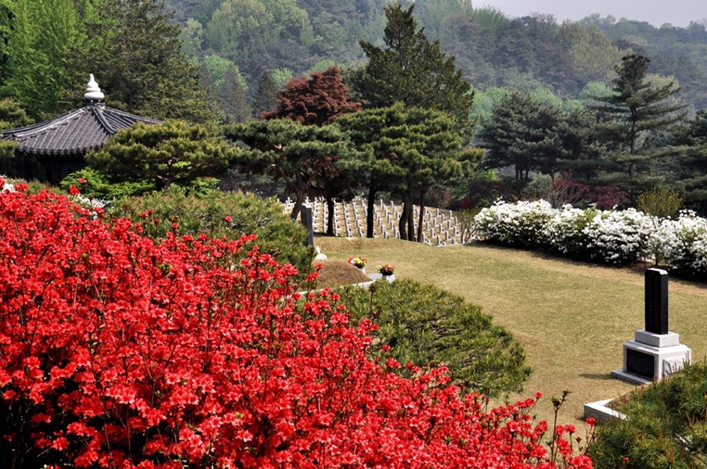 얼마전까지 흐드러지게 피었던 벚꽃은 어느덧 꽃비 되어 떨어지고 화사한 철쭉꽃이 호국영령들의 권역을 아름답게