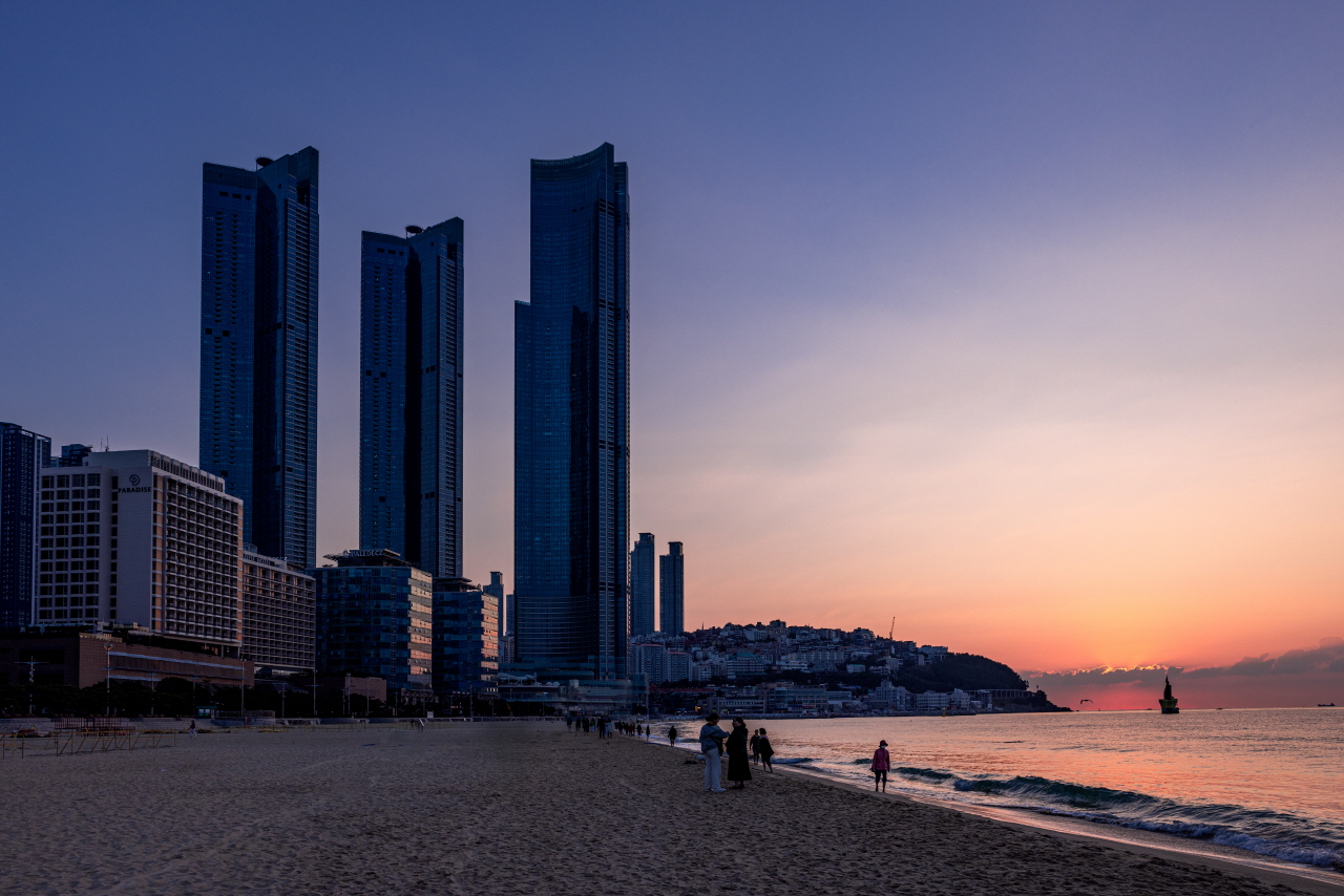 부산 해운대해수욕장의 아침 - 해운대 오메가 일출
